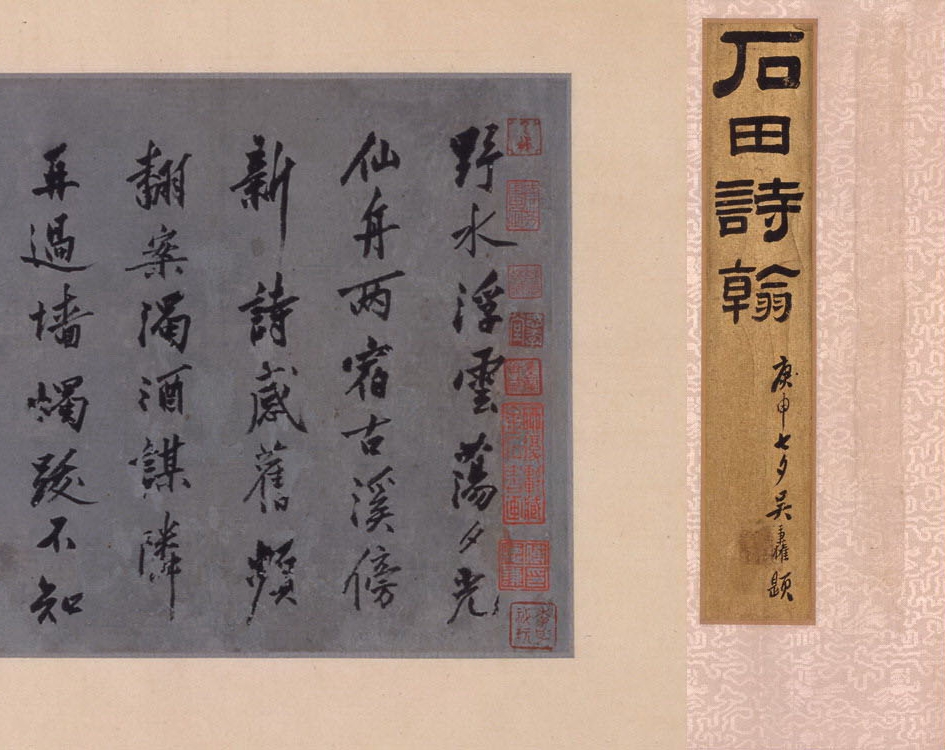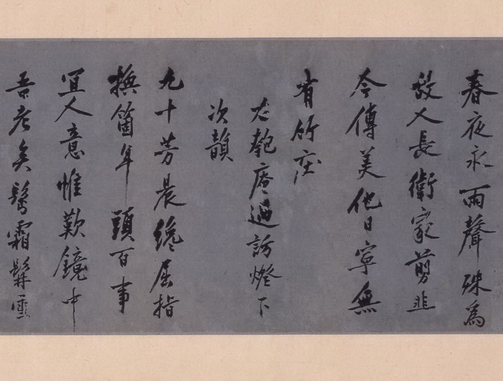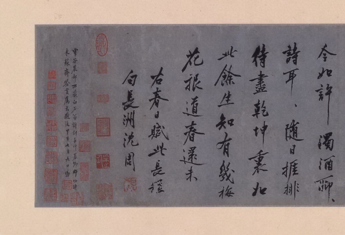 書法欣賞魏晉書法唐朝書法宋朝書法元朝書法明朝書法清朝書法近現代書法字典網>> 歷代書法>> 明朝>> 沈周·行書詩卷正文 沈周·行書詩卷作者:沈周 書體:行書 釋文:野水浮雲盪夕光,仙舟兩宿古溪傍,清篇感舊頻翻韻,濁酒謀鄰載過牆,燭跋不知春夜,乆雨聲如為故人長,衛家剪韭今傳美,他日寜無有竹莊沈周《行書詩卷》,香港藝術館虛白齋藏。沈周的相關書法作品:沈周·跋陸游《懷成都十韻詩卷》 沈周·行書詩卷 沈周·跋陸游自書詩卷 沈周《為漢文書扇》 沈周《行書五律詩軸》 沈周《行書高啟五言詩軸》 沈周《行書落花詩扇葉》 沈周《行書落花詩扇》 沈周《聲光帖》 相關文章:黃庭堅行書《致天民知命大主薄書》 (行書)黃庭堅《致天民知命大主薄書》紙本行書。25.5×45.9cm 台北故宮博物院藏...陳孚恩《行書老彭管樂七言聯》 (行書)陳孚恩《行書老彭管樂七言聯》紙本行書 124×29 cm×2 淮安市博物館藏...董其昌草書七絕扇面 (草書)董其昌草書七絕扇面 紅金箋 西泠印社藏 資料來自《西泠印社百年社藏精品》(西泠印...張雨行書《自書詩冊》 (行書)至正五年(1345) 張雨《自書雜詩冊》粉花箋 23.7×15.3cm×24...彭睿壦行草《劉長卿詩軸》 (行草)彭睿壦《劉長卿詩軸》紙本行草書 157.8×41.8cm 康熙32年(1693...啟功大字行書《多福》 (行書)啟功大字行書:多福,祝大家雞年多福多壽。程邃《行楷書扇面》 (行楷)程邃《行楷書扇面》 上海博物館藏【資料來源】轉自《上海博物館藏明清書畫扇面名品百...施閏章草書《寓松屋漫題立軸》 (草書)施閏章《寓松屋漫題立軸》紙本草書 180.1×43cm 上海博物館藏釋文:鳥聊...徐渭《行草立軸》 (行草)徐渭 行草立軸 紙本 123×35cm來自中國嘉德2005四季第2期拍賣會 ...盧中南楷書《白居易長恨歌》 (楷書)盧中南楷書《白居易長恨歌》寫於2010年12月。盧中南1950年生。中國書法家協...