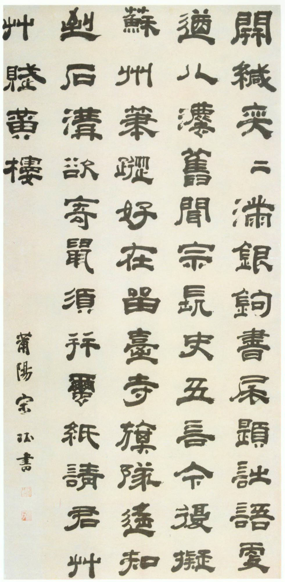 書法欣賞魏晉書法唐朝書法宋朝書法元朝書法明朝書法清朝書法近現代書法字典網>> 歷代書法>> 明朝>> 宋珏·隸書七律詩軸正文 宋珏·隸書七律詩軸作者:宋珏 書體:隸書 宋珏《隸書七律詩軸》,2000北京中國千年傳世書法珍品展(刊於《中國書法》2001年第2期)。宋珏的相關書法作品:宋珏·題鮮于樞《韓愈送李願歸盤谷序卷》 宋珏·隸書七律詩軸 相關文章:張瑞圖行書《五絕詩》軸 (行書)張瑞圖《五絕詩》軸 紙本 172.7×43.5cm 北京故宮博物院藏【釋文】...李兆洛《行書七絕詩軸》 (行書)李兆洛《行書七絕詩軸》紙本行書 131×56cm 常州博物館藏釋文:澹紫斜陽嫩...鍾繇《還示表》 (楷書)宋拓《還示表》,傳為王羲之臨鍾繇書,北京故宮博物院藏。《昨疏還示帖》又稱《還示帖...吳承恩《扇面七言律詩》 (行草)【釋文】十年塵夢繞中冷,今日攜壺試一登。醉把花枝歌水調,戲書蕉葉乞山僧。青天月落...吳寬·跋懷素《自敘帖》 (行書)吳寬《跋懷素“自敘帖”》紙本行書 縱28.3cm 台北故宮博物院藏釋文:素師《自...張方平《名茶帖》 (行書)【釋文】賢郎在侍下 留錢塘也 今有慰疏 告為附達 寵惠名茶 不任愧感愧感 中間示...傅山《丹楓閣記》 (行草)傅山《丹楓閣記》,此帖共有兩種,真跡本每頁七行,刻五,藏山西博物館;臨本,藏於遼...洪亮吉篆書《警句軸》 (篆書)洪亮吉《警句軸》紙本篆書 171.7×36.3cm 上海博物館藏釋文:不懷寶以...傅山《草書千字文》冊 (草書)傅山《草書千字文》冊 共12頁 紙本 24.5×13cm 山西省博物館藏(趙正...李鱓《行書羅隱七言詩聯》 (行書)李鱓《行書羅隱七言詩聯》紙本行書 126×27cm×2 中國國家博物館藏 釋...
