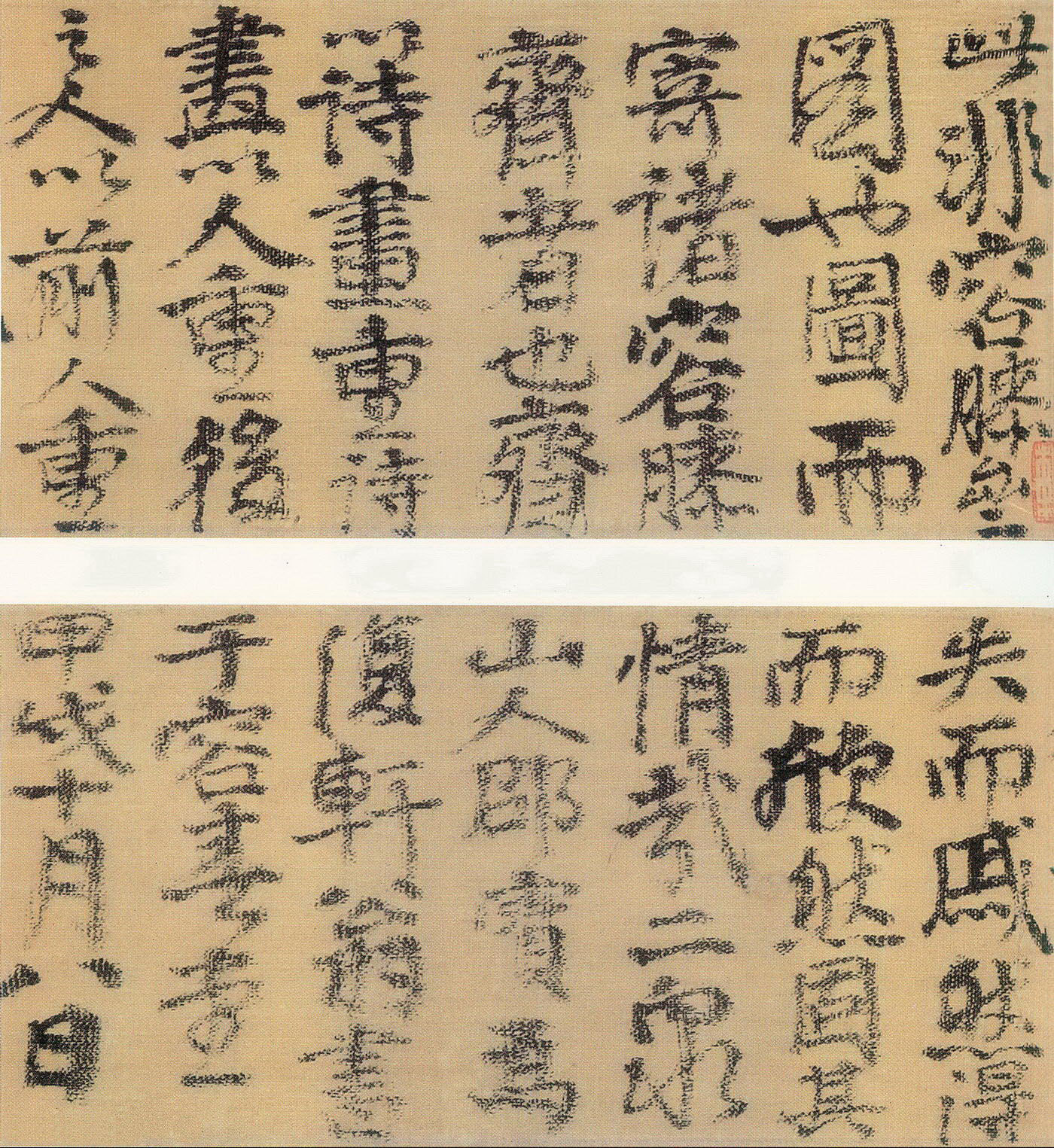 書法欣賞魏晉書法唐朝書法宋朝書法元朝書法明朝書法清朝書法近現代書法字典網>> 歷代書法>> 明朝>> 邵寶·跋倪瓚《容膝齋圖》正文 邵寶·跋倪瓚《容膝齋圖》作者:邵寶 書體:行書 邵寶跋倪瓚《容膝齋圖》。行書釋文:此非容膝齋圖也,圖而寄諸容膝齋者也。齋以詩畫重,詩盡以人重,後之人以前人重,失而戚然,得而欣然,固其情哉。二泉山人邵寶為復軒翁書於容春堂,甲戌(1514)十月八日。2015-7-9 12:43:22 邵寶的相關書法作品:邵寶行書《七言絕句扇面》 邵寶·跋倪瓚《容膝齋圖》 相關文章:楊維楨行書《跋馬遠畫商山四皓圖卷》 (行書)楊維楨 《跋馬遠畫商山四皓圖卷》 高37.7cm 藏處不詳 年代不詳釋文:商山...索靖章草《皋陶帖》 (草書)索靖《皋陶帖》,宋拓《淳化閣帖》卷三,拓本墨紙,縱25.2cm,橫13.1cm(...練毛筆字入門常識:怎么選硯台第四節 硯一、硯的種類硯台是磨墨、盛墨用的必備工具,最名貴的硯台是端硯和歙硯。端...白玉蟾·足軒銘卷 (草書)【釋文】寄題足軒。奉似吾友周長高士,紫清白玉蟾。一丘一壑志願足,始縫掖時文史足。...楊峴《隸書節錄焦氏易林句軸》 (隸書)楊峴《隸書節錄焦氏易林句軸》 132.3×63.9cm 台北故宮博物院藏 ...祝允明小楷《遠遊二首》 (小楷)祝允明小楷《遠遊二首》冊頁明代書家雖以行草為主,但莫不兼善小楷,如宋克、祝允明、...蘇軾小楷《般若波羅密多心經》 (小楷)宋代蘇軾蘇東坡書法《般若波羅密多心經》拓本:釋文:觀自在菩薩,行深般若波羅蜜多時...文徵明·跋張即之《汪氏報本庵記》 (楷書)文徵明跋張即之《汪氏報本庵記》,楷書。遼寧省博物館藏。張即之《汪氏報本庵記》,紙...程正揆行書《五言詩軸》 (行書)程正揆《行書五言詩軸》紙本行書 72.9×21.3cm 南京博物院藏 釋文:平...文徵明小楷《心經》 (小楷)文徵明小楷《心經》,尺寸:36×22cm。見於2012年4月12日上海老城隍廟...