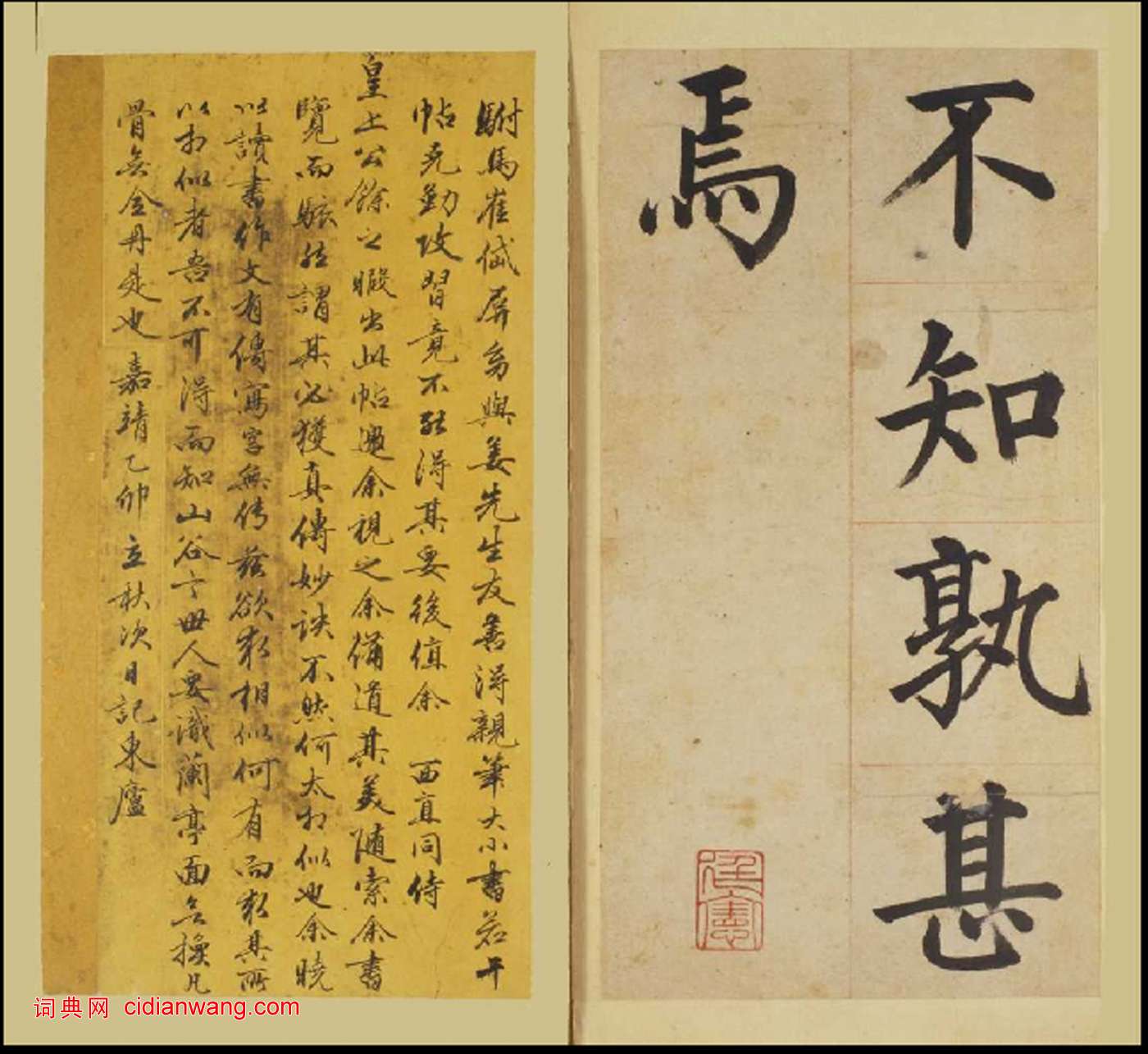 書法欣賞魏晉書法唐朝書法宋朝書法元朝書法明朝書法清朝書法近現代書法字典網>> 歷代書法>> 明朝>> 姜立綱·楷書東銘冊正文 姜立綱·楷書東銘冊作者:姜立綱 書體:楷書 姜立綱楷書《東銘》冊,明,姜立綱書,紙本,縱28.7cm,橫14.8cm。北京故宮博物院藏。此書無名款,末行下鈐“廷憲”。鑑藏印有:乾隆御覽之寶”、“嘉慶御覽之寶”、“御書房鑑藏寶”。後幅有明代東廬題記一段。此書是姜立綱書錄宋張載《正蒙》篇中的一文。此書冊用筆勁健方正,結體緊密,筆墨厚重,得力於柳公權書法,但一些筆畫過於板滯僵硬,未脫“台閣體”遺風。王世貞《藝苑巵言》曾云:“立綱小變二沈為方整,就其體中可謂工致。”2015-12-14 12:38:44 相關文章:張伯英《行書仲長統樂志論四條屏》 (行書)張伯英《行書仲長統樂志論四條屏》 刊於《書法》2011年第7期倪瓚《呈大臨征君楷書札》 (楷書)倪瓚《呈大臨征君楷書札》(為張耒儀命賦匡山讀書處)縱23厘米 橫55.5厘米 台...笪重光《行書七律詩軸》 (行書)笪重光《行書七律詩軸》紙本行書 186.1×88cm 安徽省博物館藏釋文:仙殿...劉墉《行書遠景樓記軸》 (行書)劉墉《行書遠景樓記軸》紙本行書 165×56.1cm 遼寧省博物館藏釋文: ...胡問遂臨《石門銘》 (楷書)北魏著名的摩崖石刻之一。全稱《泰山羊祉開復石門銘》。北魏宣武帝永平二年(509)...顏真卿行書《祭伯父文稿》 (行書)顏真卿《祭伯父文稿》宋甲秀堂拓本 北京故宮博物院藏又稱《告伯父文稿》,全稱《祭伯...吳昌碩《篆書司馬隃麋七言聯》 (篆書)吳昌碩《篆書司馬隃麋七言聯》 132×31.5cm×2 1878年 西泠印社...蔣仁《行書柳子米南八言聯》 (行書)蔣仁《行書柳子米南八言聯》紙本行書 133×28cm×2 上海道明拍賣有限公...沈尹默行書《歐陽修寶劍詩軸》 (行書)沈尹默《行書歐陽修寶劍詩軸》紙本行書【資料來源】《海派代表書家系列作品集——沈尹...梁昇卿隸書《御史台精舍碑》 (隸書)梁昇卿生卒不詳,初仕奉天縣尉,後官至廣州都督,太子右庶子,約天寶初年卒。與張九齡...