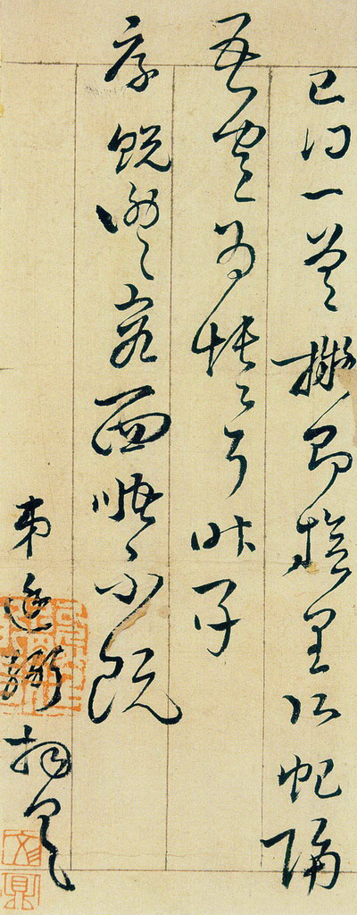 此熊廷弼致友札內容為報自己得差將離別之心情,又對友人厚貺表謝意。寥寥數行,敘事言情,勝於長文巨篇。其書法宗王羲之《十七帖》一路,而行筆遲澀中見心境之愁郁。以字法責之雖非上乘,然字外之音悠遠蒼涼。見字如見人,使人油然而生敬意,焉能斤斤於點畫也。