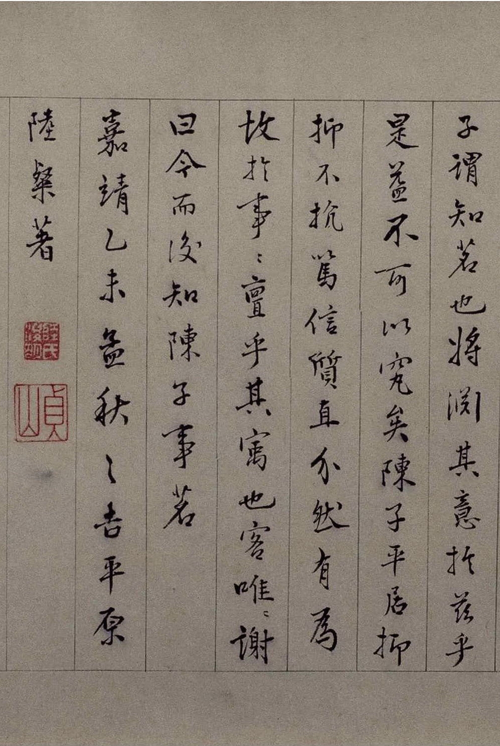 書法欣賞魏晉書法唐朝書法宋朝書法元朝書法明朝書法清朝書法近現代書法字典網>> 歷代書法>> 明朝>> 陸粲·行書事茗辨(2)正文 陸粲·行書事茗辨(2)作者:陸粲 書體:行書 首 頁 上一頁 1 2 相關文章:蔡襄《腳氣帖》 (行草)【釋文】仆自四月以來,輒得腳氣發腫,入秋乃減,所以不辭北行,然於湖山佳致未忘耳。...文徵明《偶適溪樓帖》 (楷書)文徵明《偶適溪樓帖》:楷書,紙本,尺牘;縱24.9厘米,橫18.6厘米;藏於中國...蘇軾行書《北游帖》 (行書)《北游帖》蘇軾書於元豐元年(1078)。紙本。行書,信札一則。凡9行,計61字。...高鳳翰《草書詩軸》 (草書)高鳳翰《草書詩軸》 紙本草書 139×34.5cm 濟南市博物館藏釋文:大被生...米芾·淡墨秋山詩帖 (行書)【釋文】淡墨秋山畫遠天,暮霞還照紫添煙。故人好在重攜手,不到平山謾五年。米芾《淡...今釋《行書畫耕七絕詩軸》 (行書)今釋《行書畫耕七絕詩軸》 190×40cm 廣州儀清室私人藏釋文:人皆耕地我耕...王升《衰老帖》 (行草)【釋文】升再拜 衰老杜門多病 久不承興居之問 日益系詠 近魏端叔見臨 能道動止之...魯迅行書《韋素園墓記》 (行書)魯迅《韋素園墓記》 144×68.7cm 1934年 北京魯迅紀念館藏釋文: ...董其昌·梁武帝書評卷 (行書)《梁武帝書評》卷,明天啟五年(1625年),董其昌書,紙本,行書,縱26.5cm...黃庭堅《行書華嚴經疏卷》 (行書)黃庭堅《行書華嚴經疏卷》花綾 25.1×115cm 上海博物館藏 釋文:*門抽...