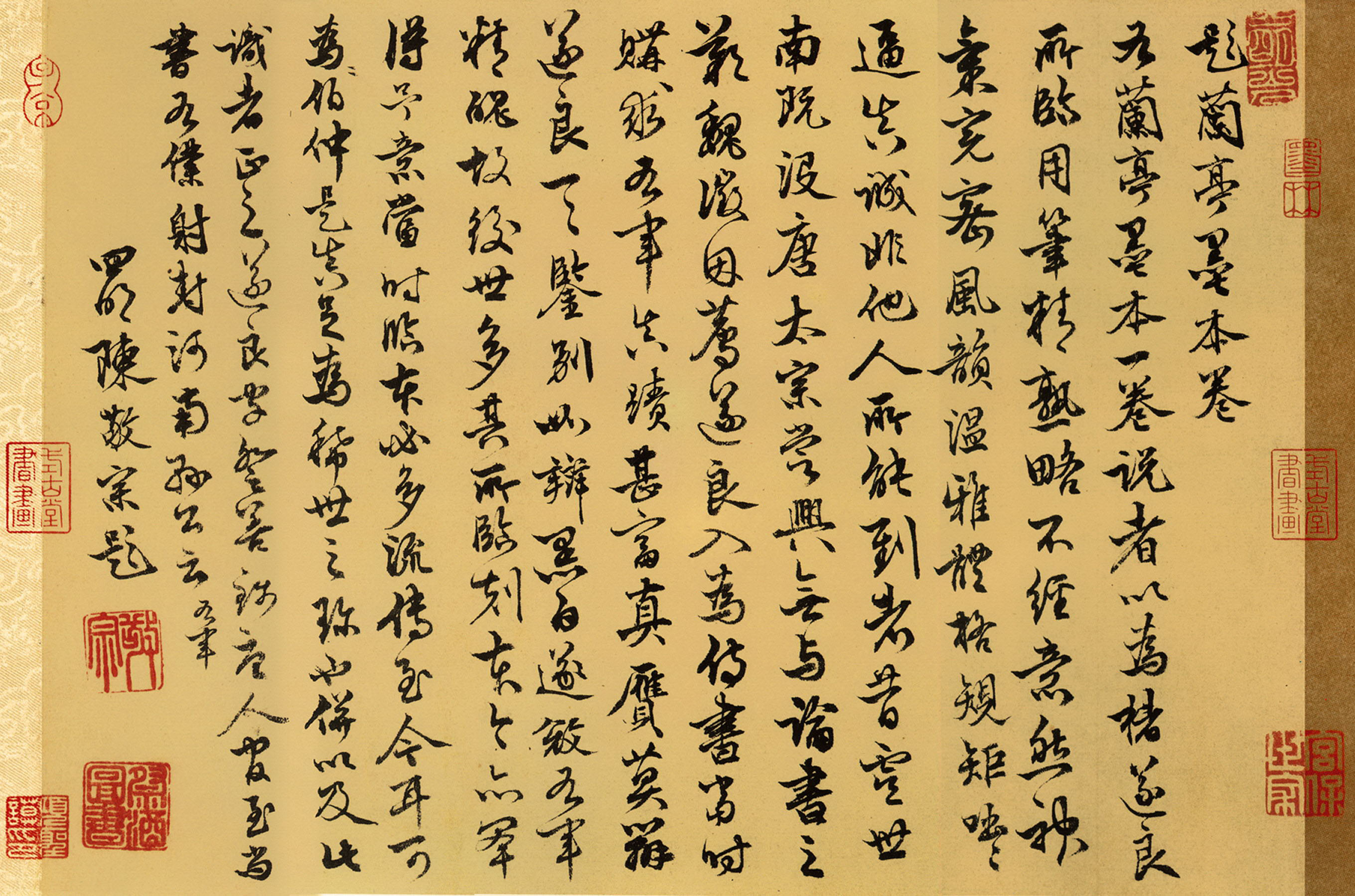 書法欣賞魏晉書法唐朝書法宋朝書法元朝書法明朝書法清朝書法近現代書法字典網>> 歷代書法>> 明朝>> 陳敬宗·跋《褚摹蘭亭序》正文 陳敬宗·跋《褚摹蘭亭序》作者:陳敬宗 書體:行書 陳敬宗跋《褚摹蘭亭序》,北京故宮博物院藏。相關文章:元拓《隋龍藏寺碑》 (楷書)《隋龍藏寺碑》講述了龍藏寺碑,隋開皇六年(公元五八六年)恆州刺史王孝零為勸造龍藏...王知敬·李靖碑 (楷書)元拓衛景武公李靖碑《李靖碑》,全稱《大唐故尚書右僕射特進開府...唐寅《行書七律四首詩卷》 (行書)唐寅《行書七律四首詩卷》紙本行書 23×286cm 天津博物館藏 釋文:聞太原...學小楷需理解這幾點小楷技巧1、小楷總體屬帖學。如能參以漢魏筆意體勢及敦煌寫經之率意,會增加蘊藉雋永之筆致。...黃庭堅《李白憶舊遊詩草書卷》 (草書)黃庭堅《李白憶舊遊詩草書卷》紙本,縱37厘米,橫392.5厘米,約書於崇寧三年(...李嘉胤草書《賈至贈陝掾梁宏詩軸》 (草書)李嘉胤《草書賈至贈陝掾梁宏詩軸》紙本草書 57.1×27.8cm 蘇州博物館藏...歷代書法經典論著大觀兩漢▼許慎《說文解字序》崔瑗《草書勢》趙壹《非草書》蔡邕《筆論》《九勢》兩晉▼成...書法常用落款大全書法作品落款位置沒有固定格式,也無絕對的位置,它是與正文互為關聯的。落款的內容視...王升《衰老帖》 (行草)【釋文】升再拜 衰老杜門多病 久不承興居之問 日益系詠 近魏端叔見臨 能道動止之...梅植之行書《錄陶潛詩軸》 (行書)梅植之《錄陶潛詩軸》紙本行書 136.9×28.8cm 揚州博物館藏。