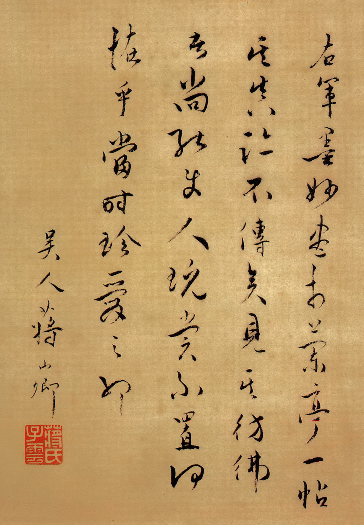 書法欣賞魏晉書法唐朝書法宋朝書法元朝書法明朝書法清朝書法近現代書法字典網>> 歷代書法>> 明朝>> 蔣山卿·跋虞世南《摹蘭亭序》正文 蔣山卿·跋虞世南《摹蘭亭序》作者:蔣山卿 書體:行草 蔣山卿跋虞世南《摹蘭亭序》,縱24.5厘米。現藏於北京故宮博物院。相關文章:歷代書法家筆下的“父親”歷代書法家筆下的“父親”書法欣賞,借字獻爹,祝爸爸父親節快樂!伊秉綬行書《自作詩扇面》 (行書)伊秉綬《自作詩扇面》紙本行書 16.5×49cm 北京故宮博物院藏 釋文:恂恂...張瑞圖《草書王維終南山詩》軸 (草書)張瑞圖《草書王維終南山詩》軸 絹本 168.5×48厘米 藏處不詳【釋文】太乙...奚岡隸書《華言妙句七言聯》 (隸書)奚岡《隸書華言妙句七言聯》紙本隸書 154.8×31.4cm×2 浙江省博物...呂祖謙《文潛帖》 (行書)【釋文】祖謙上覆。文潛至孝知府朝議兄,謹此附承慰唁。拳拳之意,不殊前幅。中甫昆仲...石濤《訪陳定九詩楷書帖》 (楷書)石濤《訪陳定九詩楷書帖》 紙本 38×24.5 康熙三十七年(1698) 廣州...新莽篆書《青銅詔版》 (篆書)新莽時期 《青銅詔版》青銅 25.9×25.7cm 上海博物館藏 由上海博物館...趙孟頫·續千字文卷 (行書)趙孟頫《續千字文卷》,24.3×153.3cm。附:《續千字文》是宋人侍其瑋模...張鳳翼·題《李思訓碑》 (行書)張鳳翼題《李思訓碑》,行書。史上書法大家們的筆法解析筆法就是使用毛筆的方法,主要有行、轉、折、提、按 、捻六種筆法。筆法是書法的基因...