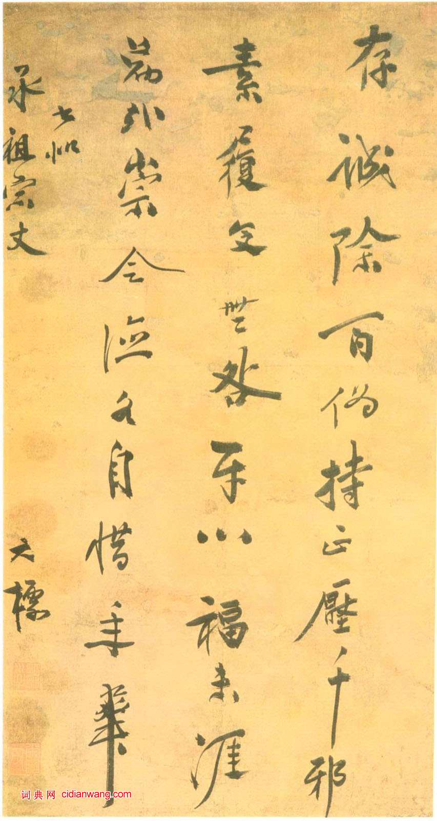 書法欣賞魏晉書法唐朝書法宋朝書法元朝書法明朝書法清朝書法近現代書法字典網>> 歷代書法>> 明朝>> 鄒元標·五言詩軸正文 鄒元標·五言詩軸作者:鄒元標 書體:行書 鄒元標《五言詩軸》,行書。相關文章:蘇軾行書《李太白仙詩卷》 (行書)蘇軾行書書法欣賞《李太白仙詩卷》,自署書於元祐8年(1093年)。紙本,李白詩二...歐楷《九成宮醴泉銘》集字聯句欣賞臨摹帖是初學書法者的必經之路,但臨摹不是目的。學像了碑帖還要能夠脫開碑帖寫好任意...北魏《司馬紹墓誌》 (楷書)《北魏司馬紹墓誌》全稱『魏故寧朔將軍固州鎮將鎮東將軍漁陽太守宣陽子司馬元興墓志銘...蘇軾《歸安丘園帖》 (行書)【釋文】軾啟。前日少致區區,重煩誨答,且審台侯康勝,感慰兼及。歸安丘園,早歲共有...朱彝尊《隸書露香風綻五言聯》 (隸書)朱彝尊《隸書露香風綻五言聯》紙本隸書 113.2×27.6cm×2 台北故宮...趙令畤《賜茶帖》 (行書)【釋文】令畤頓首: 辱惠翰,伏承久雨起居佳勝。蒙餉梨栗,愧荷。比拜上恩賜茶,分一...文徵明大字行書《游虎丘詩卷》 (行書)文徵明行書詩卷欣賞,丁巳春三月(1557年)文衡山88歲書,日本二玄社版。釋文:...錢灃楷書《臨東方朔畫贊軸》 (楷書)錢灃《臨東方朔畫贊軸》 紙本楷書 180×107cm 台北故宮博物院藏 ...董其昌行書《三思疏》 (行書)董其昌行書魏徵《諫太宗十思疏》。【原文】臣聞求木之長者,必固其根本;欲流之遠者,...啟功大字行書《多福》 (行書)啟功大字行書:多福,祝大家雞年多福多壽。