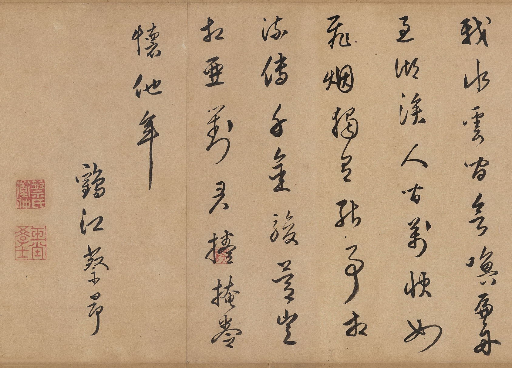 書法欣賞魏晉書法唐朝書法宋朝書法元朝書法明朝書法清朝書法近現代書法字典網>> 歷代書法>> 明朝>> 蔡昂·跋趙令穰《湖莊清夏圖卷》正文 蔡昂·跋趙令穰《湖莊清夏圖卷》作者:蔡昂 書體:草書 蔡昂跋趙令穰《湖莊清夏圖卷》,草書,縱19.1cm。波士頓美術館藏。相關文章:王羲之草書《大報帖》 (草書)王羲之《大報帖》(摹本) 25.7×10.1厘米 日本私人藏 【釋文】 便大報...張伯英《行書小來禽館札記》 (行書)張伯英《行書小來禽館札記》 刊於《書法》2011年第7期趙孟頫《妙嚴寺記》 (楷書)《妙嚴寺記》,又稱《湖州妙嚴寺記》,牟巘撰文,趙孟頫書並篆額,原件紙本橫卷,現藏...吳昌碩篆書《心經》十二條屏 (篆書)吳昌碩/《心經》十二條屏,132.5×30.2CM×12,日本東京國立博物《...沈尹默行楷《飽嘗重述七言聯》 (行楷)行楷七言聯 130厘米×21厘米×2 著錄《溫州市工藝美術研究所藏畫集》正文...“江西才子”曾棨《贈王孟安詞》 (行書)聽過“江南四大才子”,“江西才子”倒是第一次聽說!書友們就好奇了,江西才子是誰?...盧中南鋼筆臨歐陽詢《虞恭公溫彥博碑》 (楷書)盧中南鋼筆臨歐陽詢楷書《虞恭公溫彥博碑》,盧中南硬筆書法歐楷:伊秉綬《行書七言詩軸》 (行書)伊秉綬《行書七言詩軸》 釋文:雪晴雲散北...韓琦·信宿帖 (楷書)【釋文】琦再拜啟:信宿不奉儀色,共(恭)惟興寢百順。琦前者輒以《晝錦堂記》(容)...周天球《行草書斷壟連岡詩扇》 (行草)周天球《行草書斷壟連岡詩扇》紙本行書 17×50.2cm 台北故宮博物院藏釋文...