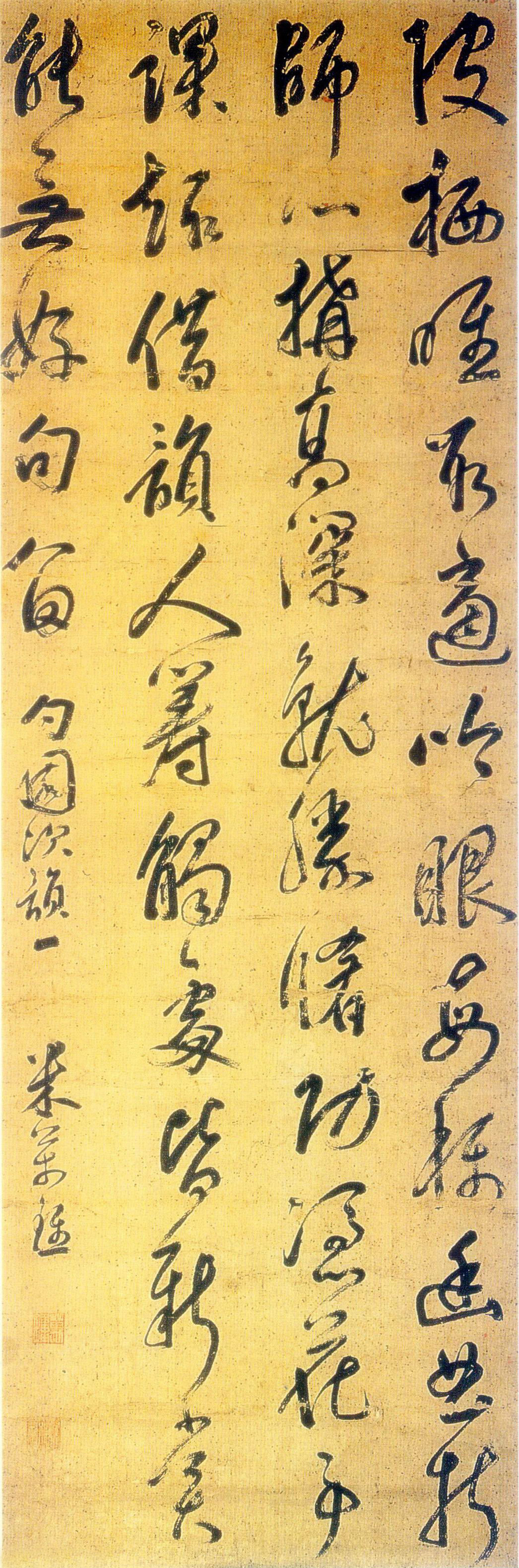 書法欣賞魏晉書法唐朝書法宋朝書法元朝書法明朝書法清朝書法近現代書法字典網>> 歷代書法>> 明朝>> 米萬鍾·勺園次韻詩正文 米萬鍾·勺園次韻詩作者:米萬鍾 書體:草書 米萬鍾《勺園次韻詩》,草書,紙本,288×98.5cm。山西省博物館藏。米萬鐘的相關書法作品:米萬鍾《草書扇面》 米萬鍾·勺園次韻詩 相關文章:沈曾植行書《臨法帖書屏》 (行書)沈曾植《臨法帖書屏》紙本 106.5×50.5cm×4 浙江省博物館藏 之三...蘇軾·洞庭春色賦中山松醪賦合卷 (行書)《洞庭春色賦》與《中山松醪賦》,均為蘇軾撰並書。此兩賦並後記,為白麻紙七紙接裝,...吳大澂《篆書白鶴泉銘》 (篆書)吳大澂《篆書白鶴泉銘》 釋文:光緒十有八年,歲在壬辰九月九日,撫湘使者...東漢隸書《西狹頌》 (隸書)摩崖刻石,漢代隸書。全稱為《漢武都太守漢陽阿陽李翕西狹頌》,篆額有“惠安西表”四...鄺露《草書杜甫詩軸》 (草書)鄺露《草書杜甫詩軸》 紙本 93×36cm 台北何創時書法藝術基金會藏 釋文:...魏碑《劉根等造像》 (楷書)《劉根等人造像碑》39.5×144㎝ 北魏正光五年(524年)五月刻 河南省博...顏真卿行草《爭座位帖》 (行草)又稱《論座帖》、《與郭僕射書》。為顏真卿行草書精品,書於代宗廣德二年(764年)...王文治行書《致嘯崖書札》 (行書)王文治字禹卿,號夢樓。江蘇丹徒(今江蘇省鎮江市)人。十二歲便吟詩作書,詩有唐人風...米芾《鄉石帖》 (行書)【釋文】新得紫金右軍 鄉石。力疾書數 日也。吾不來。果不 復來用此石矣。 元章。...索靖章草《皋陶帖》 (草書)索靖《皋陶帖》,宋拓《淳化閣帖》卷三,拓本墨紙,縱25.2cm,橫13.1cm(...