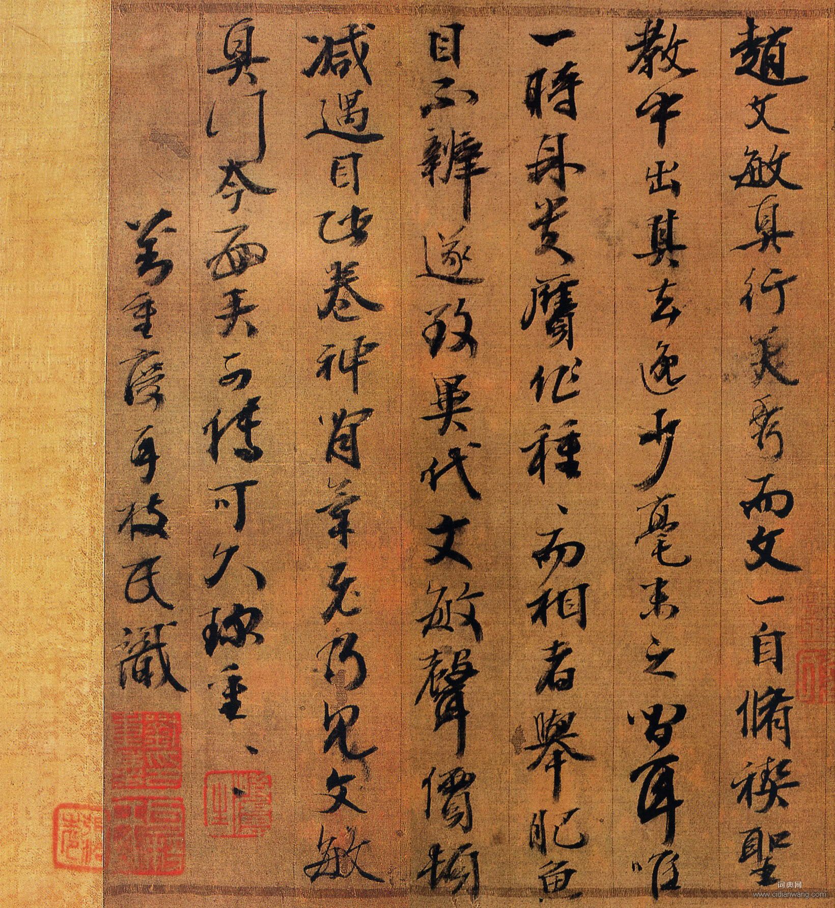 書法欣賞魏晉書法唐朝書法宋朝書法元朝書法明朝書法清朝書法近現代書法字典網>> 歷代書法>> 明朝>> 劉重慶·跋趙孟頫《吳興賦》正文 劉重慶·跋趙孟頫《吳興賦》作者:劉重慶 書體:行書 劉重慶跋趙孟頫《吳興賦》,縱25.2厘米。現藏浙江省博物館。相關文章:啟功先生書法動態運筆圖啟功(1912——2005),姓愛新覺羅,字元白,滿族,居北京。2002年10月...歐陽詢草書千字文 (草書)歐陽詢的草書《千字文》(殘卷)拓本從“比兒”起至全文結束,每行10字,計65行,...李陽冰篆書《拪先塋記》 (篆書)《拪先塋記》 唐大曆二年( 767年)李季卿撰,李陽冰書 碑殘,高 171厘米,...蘇轍《懷素自敘帖題跋》 (楷書)蘇轍《懷素自敘帖題跋》,台北故宮博物館藏。蘇轍的書法不多見,此跋也疑為後人所偽托...米芾·褚臨黃絹本蘭亭序跋贊 (行書)【釋文】右唐中書令河南公褚遂良字登善臨晉右將軍王羲之蘭亭宴集序,本朝丞相王文惠公...張伯英《楷書“采豪花藏”七言聯》 (楷書)張伯英《楷書“采豪花藏”七言聯》 刊於《書法》2011年第7期東漢隸書《熹平石經》 (隸書)熹平石經殘石 漢熹十四年( 175年)碑陽高31厘米,寬66厘米;碑陰高33厘米...嘉慶楷書范仲淹《懷舊》 (楷書)釋文:碧雲天,黃葉地。秋色連波,波上寒煙翠。山映斜陽天接水。芳草無情,更在斜陽外...王鳳靈·跋趙令穰《湖莊清夏圖卷》 (行書)王鳳靈跋趙令穰《湖莊清夏圖卷》,行書,縱19.1cm。波士頓美術館藏。完顏璟楷書《題女史箴圖卷》 (楷書)完顏璟《題女史箴圖卷》 縱24.8cm 英國大英博物館藏以上圖片根據大英博物館...