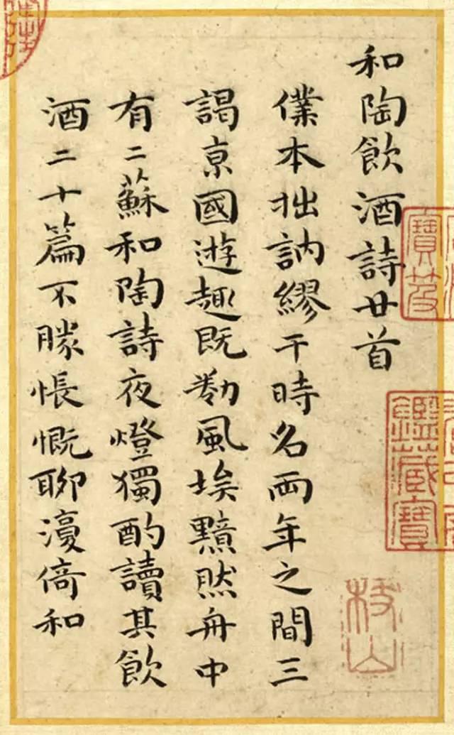 書法欣賞魏晉書法唐朝書法宋朝書法元朝書法明朝書法清朝書法近現代書法字典網>> 歷代書法>> 明朝>> 祝允明小楷 《和陶飲酒詩廿首》冊正文 祝允明小楷 《和陶飲酒詩廿首》冊作者:祝允明 書體:小楷 祝允明《和陶飲酒詩廿首》冊,台北故宮博物院藏,詩作於四十歲,為祝允明得意之作,故多次抄寫。1 2 3 4 下一頁 尾 頁祝允明的相關書法作品:祝允明楷書《燕喜亭等四記》 祝允明楷書《祖允暉慶誕記》 祝允明《草書五言詩扇面》 祝允明·小楷洛神賦 祝允明小楷 《和陶飲酒詩廿首》冊 祝允明草書《桃源圖詩冊》 祝允明《草書杜甫秋興八首》 祝允明《樂志論草書軸》 祝允明·小楷千字文 相關文章:吳餘慶·跋裴寬《秋郊散牧圖》 (行書)吳餘慶跋裴寬《秋郊散牧圖》,大都會藝術博物館藏。吳寬行書《次韻喜雨一首扇面》 (行書)吳寬《次韻喜雨一首扇面》紙本金箋行書 17.1×49.5cm 美國紐約大都會藝...曾紆·跋懷素《自敘帖》 (楷書)曾紆跋懷素《自敘帖》,楷書,現藏台灣故宮博物院。陳澧《節錄城隍廟碑篆書軸》 (篆書)陳澧《篆書軸》 101.7x55.4 台北故宮博物院藏是軸節錄自唐乾元二年所刻《...全國第一屆書法篆刻展作品集-行書部分1980年5月,全國第一屆書法篆刻展覽(國展)在瀋陽展出,現與大家分享由人民美術...貫雲石行書《題宋人寒鴉圖卷》 (行書)貫雲石《題宋人寒鴉圖卷》行書 縱28cm 遼寧省博物館藏 釋文:飢凍哀鳴不忍觀...楊維楨行書《致理齋明府尺牘》 (行書)楊維楨《致理齋明府尺牘》 紙本行書 28.8×51.1cm台北故宮博物院藏 元...老印套怎么做,印套的做法今天給大家介紹一下印套的做法:工具:乳膠;剪子;尺子;牛角或骨簽(用於整形壓邊磨...朱耷《草書小山野水七言聯》 (草書)朱耷《草書小山野水七言聯》紙本草書 105×23cm×2 蘇州靈岩寺藏釋文:...古人的練書法教程初學不外臨摹。臨書得其筆意,摹書得其間架。臨摹既久,則莫如多看,多悟,多商量,多...