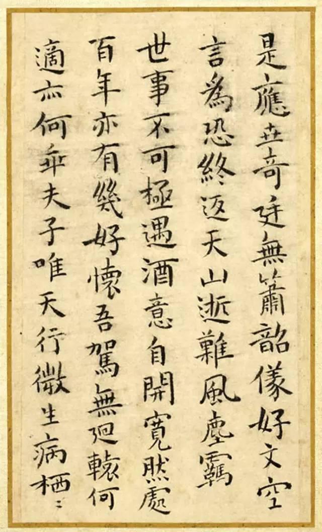 書法欣賞魏晉書法唐朝書法宋朝書法元朝書法明朝書法清朝書法近現代書法字典網>> 歷代書法>> 明朝>> 祝允明小楷 《和陶飲酒詩廿首》冊(4)正文 祝允明小楷 《和陶飲酒詩廿首》冊(4)作者:祝允明 書體:小楷 首 頁 上一頁 1 2 3 4 祝允明的相關書法作品:祝允明《致元和手札》 祝允明·小楷洛神賦 祝允明·行書牡丹賦 祝允明小楷《和陶飲酒詩》 祝允明小楷《遠遊二首》 祝允明草書《摸魚兒詞》 祝允明·跋米芾《蜀素帖》 祝允明·劉君文威聽泉記 祝允明《草書李白五言古詩卷》 相關文章:顏真卿《祭侄稿》 (不詳)【釋文】維乾元元年,歲戊戌,九月,庚午朔,三日壬申,第十三叔,銀青光祿(大)夫,...張瑞圖行書《書米芾西園雅集圖記十二條屏》 (行書)張瑞圖《書米芾西園雅集圖記十二條屏》 絹本行書 207×54.6cm×12條...西漢隸書《神烏傅》 (隸書)神烏傅(賦) 規格 : 長 2 2 厘米,寬 0.9 厘米概要 : 1993 ...黃賓虹《篆書太史老農七言聯》 (篆書)黃賓虹《篆書太史老農七言聯》 選自《高山仰止·紀念黃賓虹誕辰150周年系列展...黃庭堅·砥柱銘 (行書)釋文維十有一年,皇帝御天下之十二載也。道被域中,威加海外;六和同軓(軌),八荒有...吳寬行書《跋朱熹“城南倡和詩卷”》 (行書)吳寬《跋朱熹“城南倡和詩卷”》紙本行書 縱31.5cm 北京故宮博物院藏 ...迺賢·南城詠古詩帖 (行楷)元 迺賢《南城詠古詩帖》,紙本,行楷,縱23.5cm,橫156.6cm。迺賢雖為...魏了翁·提刑提舉帖 (行草)【釋文】提刑提舉親家尊眷丈,所□昭代親友兄弟間,鹹以□音來赴,謂久痢所致。謂八月...祝允明小楷《東坡記游卷》 (小楷)祝允明小楷《東坡記游卷》《東坡記游卷》為紙本,縱13.4厘米,橫269.6厘米,...鄭燮《行書自作唐多令詞扇》 (行書)鄭燮 《行書自作唐多令詞扇》上海博物館藏 釋文:絕塞雁行天,東吳鴨嘴...