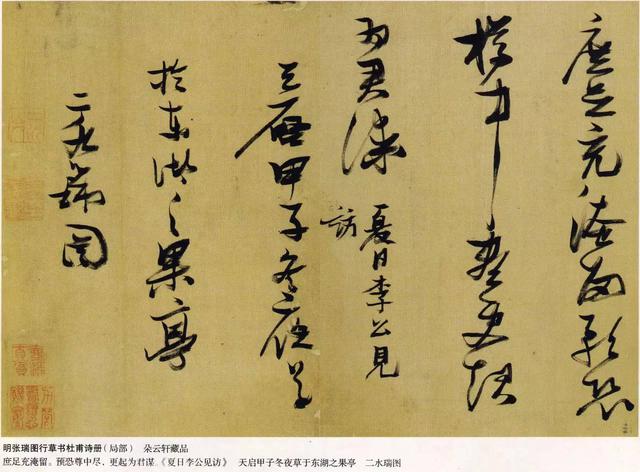 書法欣賞魏晉書法唐朝書法宋朝書法元朝書法明朝書法清朝書法近現代書法字典網>> 歷代書法>> 明朝>> 張瑞圖《行草書杜甫詩冊》(7)正文 張瑞圖《行草書杜甫詩冊》(7)作者:張瑞圖 書體:行草 首 頁 上一頁 1 2 3 4 5 6 7 張瑞圖的相關書法作品:張瑞圖行書《書米芾西園雅集圖記十二條屏》 張瑞圖行草《書王建宮詞等四首條屏》 張瑞圖小楷《王無功答馮子華書》冊 張瑞圖《行書古洞五律詩軸》 張瑞圖行書論書卷 張瑞圖草書《李夢陽夏日過序公詩扇》 張瑞圖草書《李白獨坐敬亭山詩軸》 張瑞圖草書《郭璞遊仙詩》 張瑞圖草書《岑參登總持閣五言詩軸》 相關文章:劉炳森隸書《千字文》 (隸書)劉炳森隸書《千字文》,書於京華瑞德堂,中國和平出版社出版,當代名家書千字文。北魏楷書《吊比干碑》 (楷書)《魏孝文帝吊比干文碑》位於河南衛輝城北7.5公里比干墓祠。北魏太和十八年(494...王寵草書《送友生游茅山詩》 (草書)王寵《送友生游茅山詩》冊 紙本,草書。28.8×25.4厘米此冊《送友生游茅山...鄧石如行草《海龍天鶴五言聯》 (行草)鄧石如《海為龍世界 天是鶴家鄉行草五言聯》 中國國家博物館藏【釋文】海為龍世界,...曾熙《篆書永弟中子七言聯》 (篆書)曾熙《篆書永弟中子七言聯》紙本篆書 130×25cm×2 1920年作釋文:...王羲之·集王聖教序 (行書)全稱《大唐三藏聖教序》。懷仁集王羲之行書而成。唐·鹹亨三年(672)十二月建。...蔡襄《自書詩卷》 (行書)蔡襄《自書詩卷》,素箋本,縱28.2厘米、橫221.1厘米。藏故宮博物院。此帖是...張即之日本禪院題字 (楷書)張即之(1186—1263)善作擘窠大字,豐碩巨刻,散流江左。“方丈”被譽為張即...長沙窯詩文壺《一暑寒梅南北枝》 (行書)行書——青釉褐彩“一暑(樹)寒梅南北枝”詩文壺(局部) 殘高13厘米 湖南省博...曹秀先《行書軸》 (行書)曹秀先《行書軸》紙本行書 97×46.1cm 常州市博物館藏釋 文:青精之飯,...