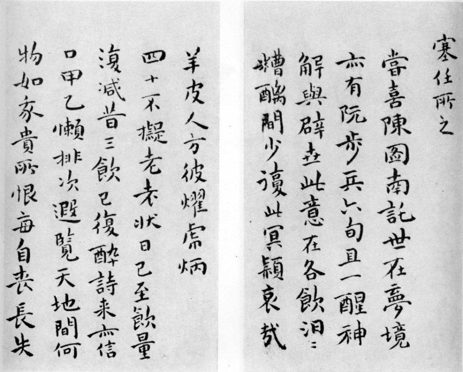 書法欣賞魏晉書法唐朝書法宋朝書法元朝書法明朝書法清朝書法近現代書法字典網>> 歷代書法>> 明朝>> 祝允明小楷《和陶飲酒詩》(5)正文 祝允明小楷《和陶飲酒詩》(5)作者:祝允明 書體:小楷 首 頁 上一頁 1 2 3 4 5 6 下一頁 尾 頁祝允明的相關書法作品:祝允明草書《自書詩卷》 祝允明行草《自作詩四首》 祝允明·跋李應楨《雜錄冊頁》 祝允明臨懷素《秋興八首》 祝允明·跋米芾《蜀素帖》 祝允明草書《桃源圖詩冊》 祝允明行草·歸田賦 祝允明《樂志論草書軸》 祝允明·劉君文威聽泉記 相關文章:傅山《右軍大醉詩軸》 (草書)《右軍大醉詩軸》釋文:右軍大醉舞蒸豪,顛倒青籬白錦袍。滿眼師宜欺老輩,遙遙何處落...趙孟頫楷書《仇鍔墓碑銘》 (楷書)趙孟頫《仇鍔墓碑銘》,行楷書墨跡。卷高37.2厘米,共一百九十二行,滿行六字, ...徐渭《行草七言詩軸》 (行草)徐渭《行草七言詩軸》 紙本188.9×46.8cm 台北故宮博物院藏轉自《故...祁寯藻行書《論畫軸》 (行書)祁寯藻《行書論畫軸》紙本行書 173.5×40cm 遼寧省博物館藏釋文:龍門李...祝允明小楷《遠遊二首》 (小楷)祝允明小楷《遠遊二首》冊頁明代書家雖以行草為主,但莫不兼善小楷,如宋克、祝允明、...王羲之草書《初月帖》 (草書)《初月帖》,紙本,遼寧省博物館藏。此帖為《唐摹萬歲通天帖》之二。王羲之父名“正”...沈嘉《十二月十三日帖》 (草書)東晉 沈嘉《十二月十三日帖》,草書。此帖用筆沉穩,點畫的起、行、收都一絲不苟。點...鍾紹京《維摩經》楷書經典 (楷書)鍾繇是楷書體的創立者,鍾紹京繼承了家學淵源,有著名的《靈飛經小楷字帖》、《唐人小...陳奕禧《行書詩卷》 (行書)陳奕禧《行書詩卷》,香港藝術館虛白齋藏。蔣善進臨《智永真草千字文》敦煌石室殘卷 (真草)唐 蔣善進臨《智永真草千字文》敦煌石室殘卷 法國國家圖書館藏 轉自敦煌國際項目網...
