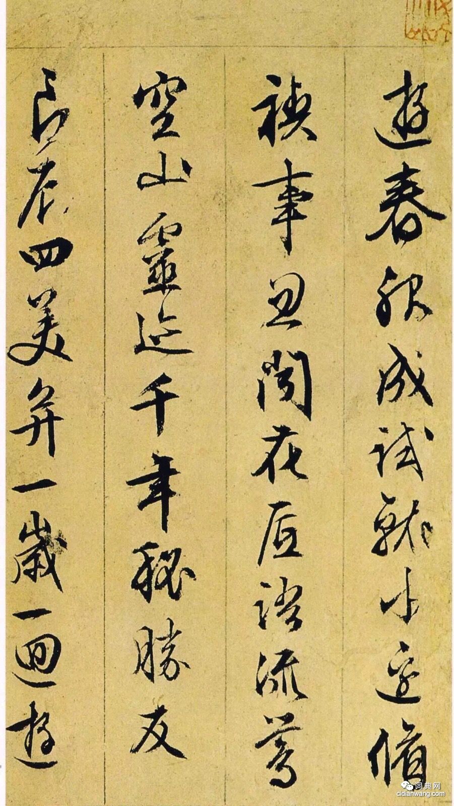書法欣賞魏晉書法唐朝書法宋朝書法元朝書法明朝書法清朝書法近現代書法字典網>> 歷代書法>> 明朝>> 文徵明《行草詩冊》欣賞(8)正文 文徵明《行草詩冊》欣賞(8)作者:文徵明 書體:行草 首 頁 上一頁 4 5 6 7 8 9 10 11 12 13 下一頁 尾 頁文徵明的相關書法作品:文徵明《行書七律詩軸》 文徵明行書《對酒詩軸》 文徵明狂草詩卷 文徵明小楷《琴賦》 文徵明行書 《剡藤湘竹七言詩軸》 文徵明大字行書《游虎丘詩卷》 文徵明行草《喜雨七言詩扇》 文徵明行書《雜花詩十二首》 文徵明行書《張一川小傳》 相關文章:邊壽民書法欣賞 (行書)清朝有位畫家以擅畫蘆雁出名,他的畫作曾被雍正皇帝所收藏。他終生隱居、窮困潦倒、卻...王羲之《袁生帖》 (草書)【釋文】(産婦兒萬留之月盡遣,甚慰心。)得袁、二謝書,具為慰。袁生暫至都,已還未...文徵明《拙政園圖冊》 (行書)拙政園是蘇州園林中的經典之作,始建於明朝。明正德初年(16世紀初),因官場失意而...法式善《行書七古詩軸》 (行書)法式善《行書七古詩軸》紙本行書 108.5×57cm 北京文物商店藏釋文: 朱...虞集·白雲法師帖 (草書)【釋文】集頓首奉記。白雲法師和上鄉契,去年過訪,足仞至情。別後極深懷系。大墓甚感...劉墉《楷書御製四知書屋記頁》 (楷書)劉墉《楷書御製四知書屋記頁》(部分) 釋文:略 【資料來源】《中國書法》雜誌...萬上遴《行書論爭座位帖軸》 (行書)萬上遴《行書論爭座位帖軸》紙本行書 83×43.5cm 安徽省博物館藏釋文:以...田英章楷書《滕王閣序》 (楷書)田英章楷書《滕王閣序》,次庚寅孟秋玥日書,歐楷《滕王閣序》。釋文:南昌故郡,洪都...倪元璐行草《春日郊外馬上作五律詩軸》 (行草)倪元璐《春日郊外馬上作五律詩軸》行草書 釋文:木孔蟲穿葉,被火瞞到今。化機與草說...柳公權楷書《太上洞玄消災護命經》 (楷書)柳公權《太上洞玄消災護命經》 柳公權《太上洞玄消災護命經》未加考證,應是柳公權早...