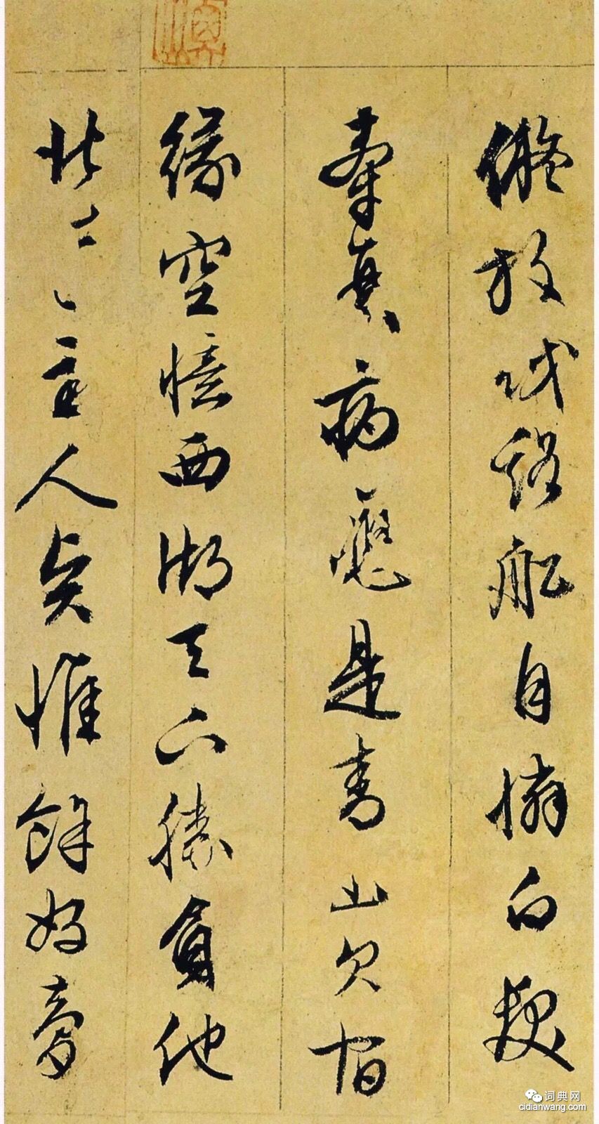 書法欣賞魏晉書法唐朝書法宋朝書法元朝書法明朝書法清朝書法近現代書法字典網>> 歷代書法>> 明朝>> 文徵明《行草詩冊》欣賞(10)正文 文徵明《行草詩冊》欣賞(10)作者:文徵明 書體:行草 首 頁 上一頁 6 7 8 9 10 11 12 13 14 15 下一頁 尾 頁文徵明的相關書法作品:文徵明行書《滿江紅》 文徵明行書《立春進賀》七律立軸 文徵明行書《離騷》 文徵明《行書午門朝見詩》 文徵明行草《雪詩卷》 文徵明小楷《摩訶般若波羅蜜多心經》 文徵明行草《致石門函並感事詩》 文徵明行書《致華氏手札冊》 文徵明·小楷蓮社圖記 相關文章:孫星衍行書《七律詩軸》 (行書)孫星衍《行書七律詩軸》灑金箋行書 67.8×24cm 上海博物館藏釋文:輞水樊...張雨行書《上閒止詩卷》 (行書)張雨《上閒止詩卷》紙本 29.4×41.6cm 至正九年(1349) 台北故...何紹基隸書《四面一尊七言聯》 (隸書)何紹基《隸書“四面一尊”七言聯》紙本隸書 128.3×31cm×2 浙江省博...歐陽詢小楷《九歌》 (小楷)此宋石刻本不知何時埋入土中。清嘉慶二十三年河北豐潤縣重出。一面刻《九歌》小楷,一...何紹基行書《七絕軸》 (行書)何紹基《行書七絕軸》紙本行書 129.5×32.7cm 天津博物館藏釋文:風枝...30多年前啟功等大師為人民日報海外版的題字30多年前歐陽中石頭、林散之、沈鵬、啟功、趙朴初、范曾等書法大師們為八十年代人民...李邕行書《李思訓碑》拓本 (行書)《李思訓碑》原題《唐故云麾將軍右武衛大將軍贈秦州都督彭國公謚曰昭公李府君神道碑》...《董美人墓誌》北京大學藏本 (楷書)《董美人墓誌》全稱《美人董氏墓志銘》。隋開皇十七年(公元597年)刻,原石於清嘉...鍾紹京小楷《初拓靈飛經》清拓本 (小楷)初拓靈飛經 ,鍾紹京書. 翻刻. [China : s.n., 淸, betwe...陳淳《草書千字文》 (草書)陳淳《草書千字文冊》紙本 草書 32×16.5cm×17頁 嘉靖十七年(15...