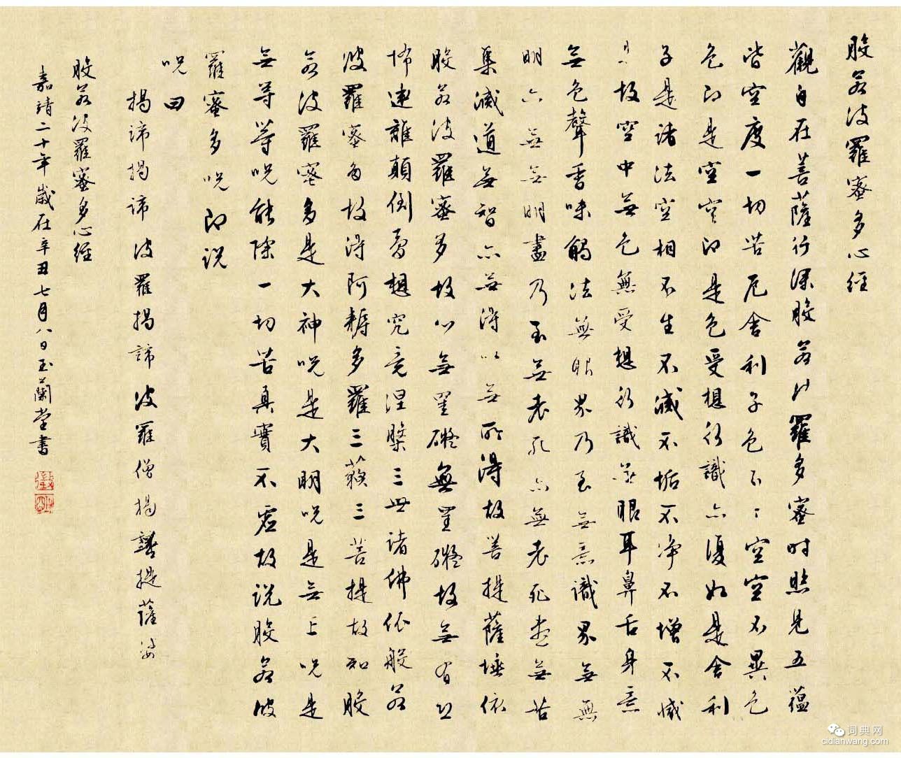 文徵明行書《心經》,書於明嘉靖二十年,此時文徵明七十二歲,現藏於南京博物院。