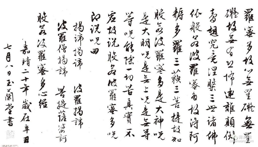 文徵明行書《心經》,書於明嘉靖二十年,此時文徵明七十二歲,現藏於南京博物院。