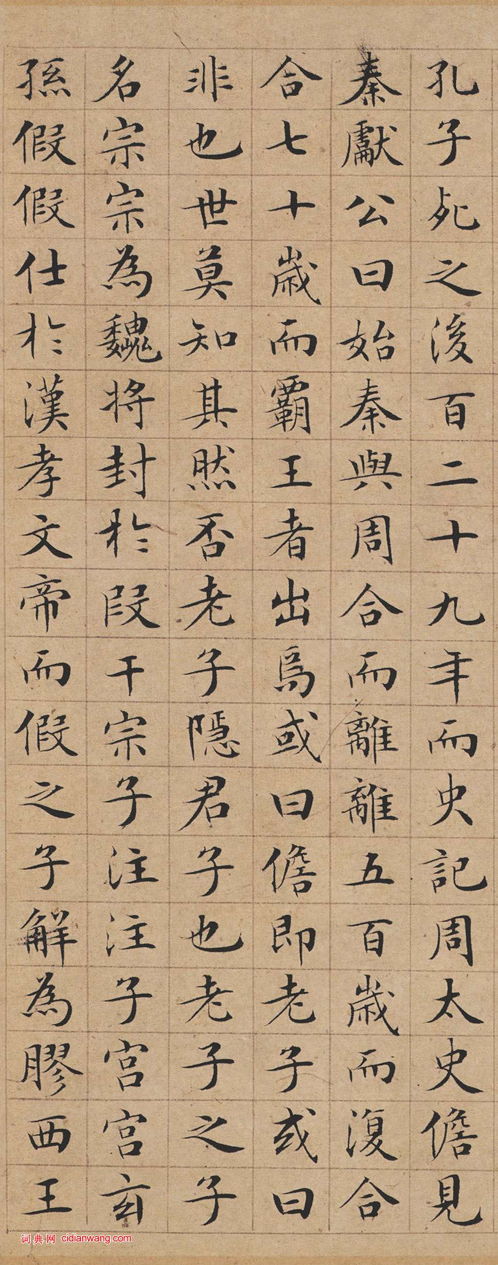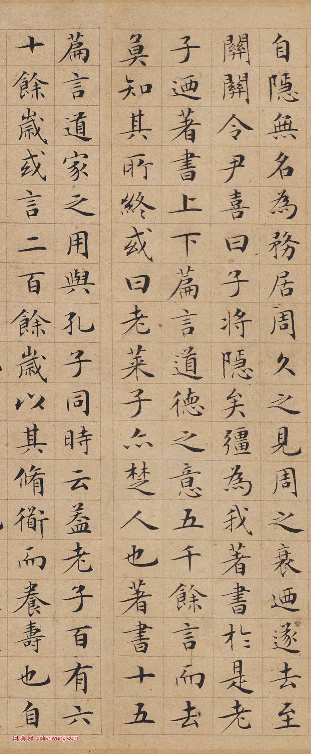 文徵明小楷《老子列傳》該作作於68歲,於《太上老君說常清淨經》合裝一冊,《老子列傳》凡34行,書於明世宗嘉靖十七年(1538年)六月十九日,時年69歲。均鈐“徵”、“明”朱文連珠小印。現藏天津市藝術博物館。