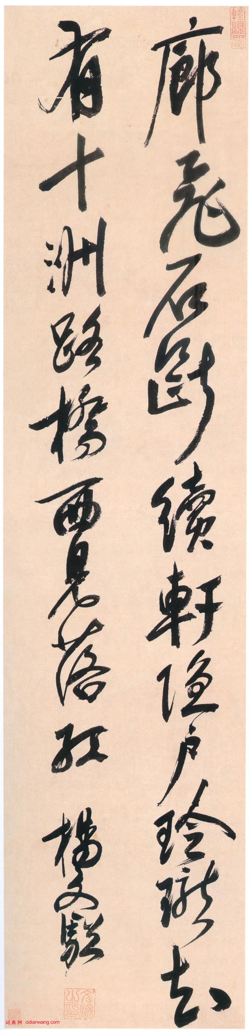 書法欣賞魏晉書法唐朝書法宋朝書法元朝書法明朝書法清朝書法近現代書法字典網>> 歷代書法>> 明朝>> 楊文驄《行書五言詩軸》正文 楊文驄《行書五言詩軸》作者:楊文驄 書體:行書 楊文驄《行書五言詩軸》紙本行書 資料不詳釋文:廊飛石斷續,軒隱戶玲瓏。知有十洲路,橋西見落紅。 款署:楊文驄。 【資料來源】《中國法書全集》-17-清1(文物出版社 可嘉掃描)相關文章:蔡襄《離都帖》 (行書)【釋文】襄啟。自離都至南京。長子勻感傷寒七日。遂不起此疾。南歸殊為榮幸。不意災禍...沈周·跋陸游《懷成都十韻詩卷》 (行書)沈周跋陸游《懷成都十韻詩卷》,行草書,縱34.6cm。故宮博物院藏。董其昌·跋《張旭古詩四帖》 (行書)董其昌跋《張旭古詩四帖》,行書。王鐸《草書冊》 (草書)王鐸《草書冊》 海外華裔私人藏釋文:當秋暮雨煙欲飛,鶴來亭樹, 攜榼登嘯,殊開...蕭思話草書《節近帖》 (草書)南北朝(蕭)梁蕭思話書《節近帖》釋文:“一月三日思話白,節近,說寒切,足下復何如...吳寬行書《飲洞庭山悟道泉詩》 (吳寬)吳寬《飲洞庭山悟道泉詩》紙本 140.4×57cm 北京故宮博物院藏。釋文:...黃庭堅行楷《徐純中墓志銘》 (行楷)黃庭堅《徐純中墓志銘》行楷,72×63cm,24行,行25字,計548字。19...沈周《聲光帖》 (行書)【釋文】向自金仲,寄至蘇合丸,珍佩、珍佩。日來知德與位稱聲光,向隆可見,德門舊族...張雨行書《跋褚遂良摹蘭亭序卷》 (行書)張雨《跋褚遂良摹蘭亭序卷》紙本 24.3×70.3cm 大德八年(1304)北...歐陽詢·虞恭公碑 (楷書)《虞恭公碑》又名《溫彥博碑》,岑本文撰文,歐陽詢書,全碑計三十六行,每行七十七字...