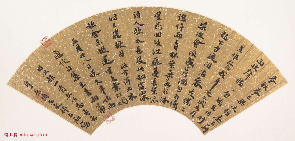 吳寬《次韻喜雨一首扇面》,紙本,金箋,行書,尺寸:17.1×49.5cm, 美國紐約大都會藝術博物館藏。