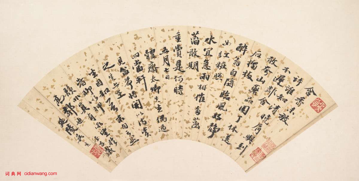 吳寬《和體齋賞荷詩一首扇面》紙本金箋行書 17.5×49.5cm 美國紐約大都會藝術博物館藏