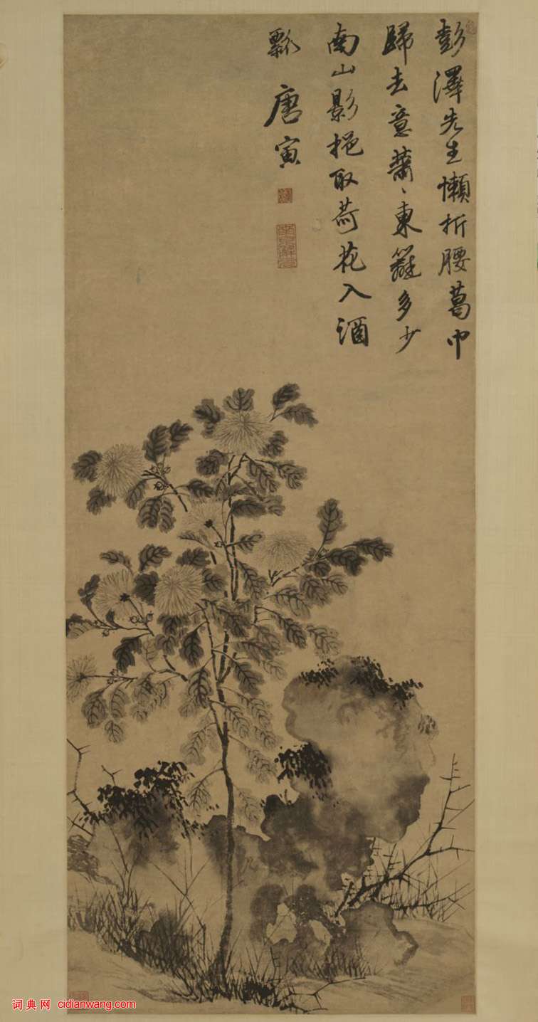 唐寅《秋菊圖》軸 紙本水墨,135×55.5cm 天津博物館藏