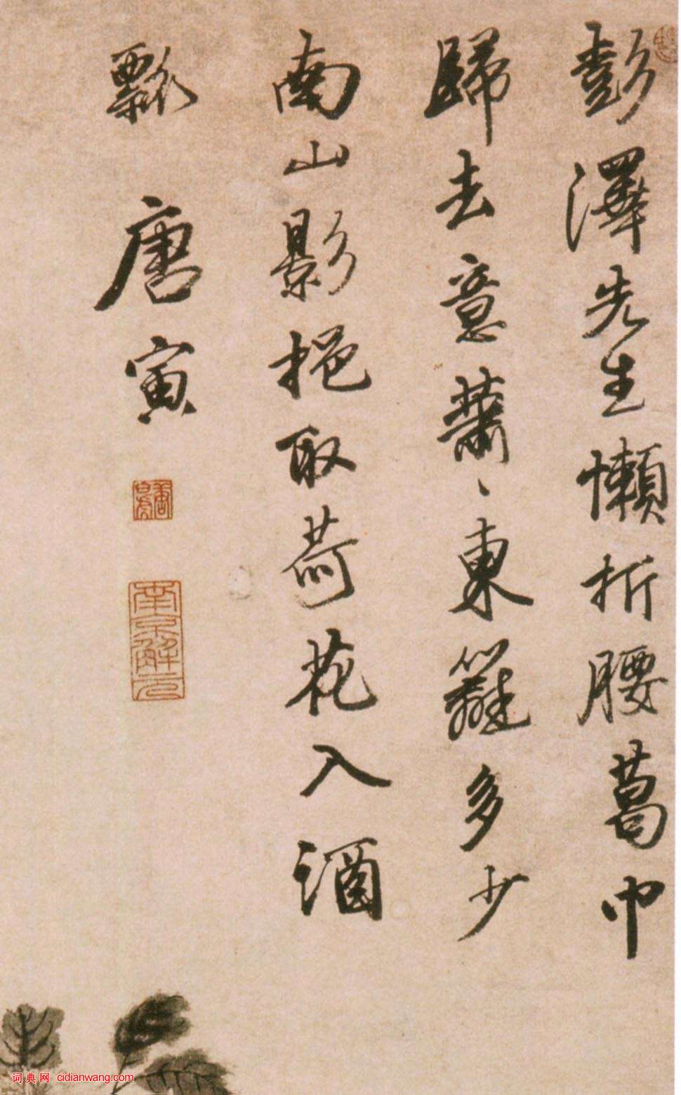 唐寅自題《秋菊圖》紙本行書 天津博物館藏。