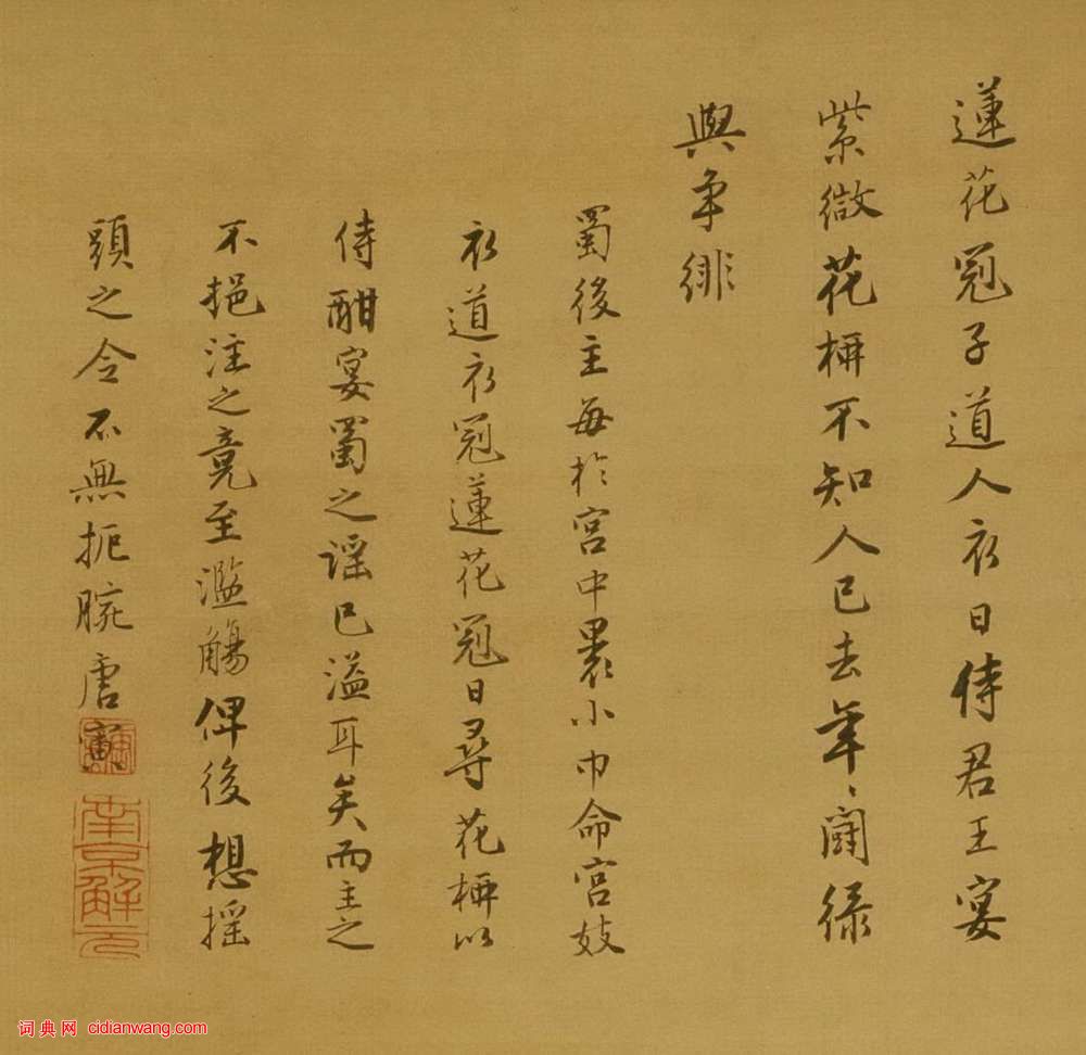 唐寅自題《王蜀宮妓圖》絹本行書 北京故宮博物院藏。