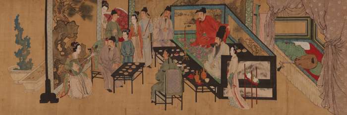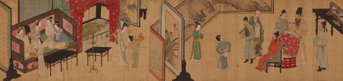 唐寅《臨韓熙載夜宴圖》絹本設色 30.8×547.8cm 重慶中國三峽博物館藏