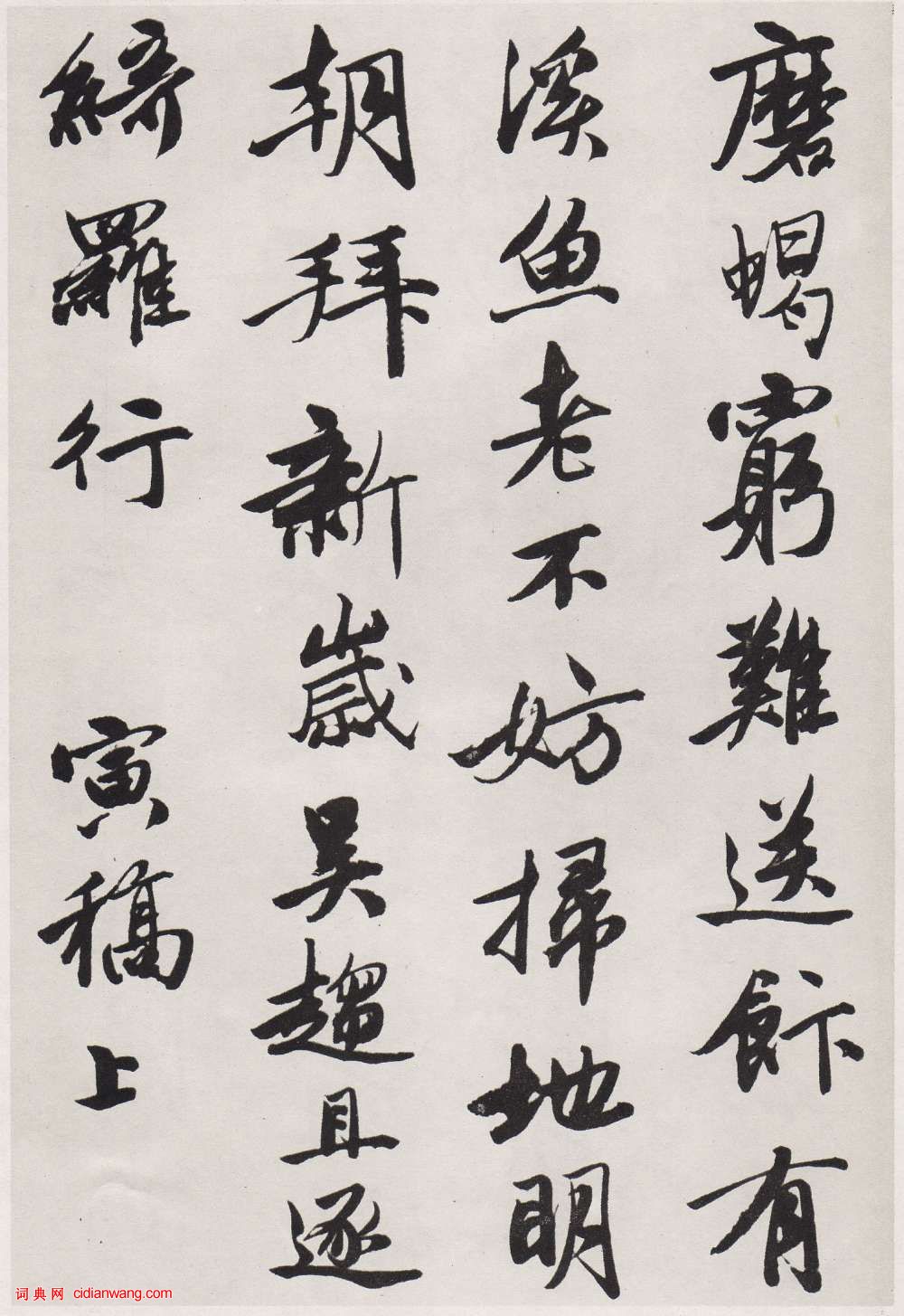 資源下載魏晉書法唐朝書法宋朝書法元朝書法明朝書法清朝書法近現代書法字典網>> 歷代書法>> 明朝>> 唐寅行書《七律四首詩卷》(5)正文 唐寅行書《七律四首詩卷》(5)作者:唐寅 書體:行書 首 頁 上一頁 1 2 3 4 5唐寅的相關書法作品:唐寅《行書與若容手書冊》 唐寅行書《尺牘之二》 唐寅行書《七言絕句四條屏》 唐寅《行書七律四首詩卷》 唐寅行書《跋宋王詵江山疊翠圖》 唐寅行書《望湘人·春日花前詠懷詩扇面》 唐寅·自題《李端端圖》 唐寅行書題《事茗圖卷》 唐寅行書 《秋風紈扇圖題詩》 相關文章:東漢隸書《馮煥神道闕》 (隸書)《馮煥神道闕》刻於東漢永寧二年(公元121年),石在四川渠縣北新興鄉趙家坪道旁。...黃庭堅行書《酺池寺詩》 (行書)黃庭堅行書《酺池寺詩》小黠大痴螳捕蟬。有餘不足夔憐蚿。退食歸來北窗夢。一江春月趁...蘇軾行書《次韻三舍人省上詩帖》 (行書)蘇軾《次韻三舍人省上詩帖》釋文: 次韻 三舍人省上一首 。 紛紛榮瘴何能久?...吳昌碩《篆書鳴禽朝花八言聯》 (篆書)吳昌碩《篆書鳴禽朝花八言聯》 202×42cm×2 1918年 浙江美術館藏...王羲之《蘭亭序》 (行書)神龍本(馮承素摹本)【釋文】永和九年,歲在癸丑,暮春之初,會於會稽山陰之蘭亭,修...西漢隸書《陽泉使者舍熏爐銘》 (隸書)陽泉使者舍熏爐銘,銘文13行凡47字,西漢。是器傳為西漢時期銅器,無詳細考據資料...王羲之《黃庭經》 (不詳)(註:上選為唐拓本)【釋文】上有黃庭,下有關元,前有幽闕,後有命門,噓吸廬外,出...陳融《草書詩軸》 (草書)陳融《草書詩軸》,紙本,澳門博物館藏。釋文:冷落東風萬柳絲,銷魂橋上立多時。酒痕...楊凝式《夏熱帖》 (草書)《夏熱帖》楊凝式書。紙本草書,縱23.8厘米,橫33厘米,書八行,每行六字不等。...倪元璐行楷《秋窗月墮七言詩句立軸》 (行楷)倪元璐《秋窗月墮七言詩句立軸》紙本行楷書 121.9×28cm 遼寧省博物館藏...