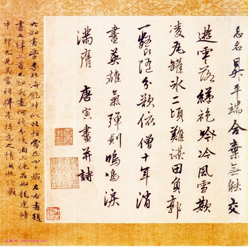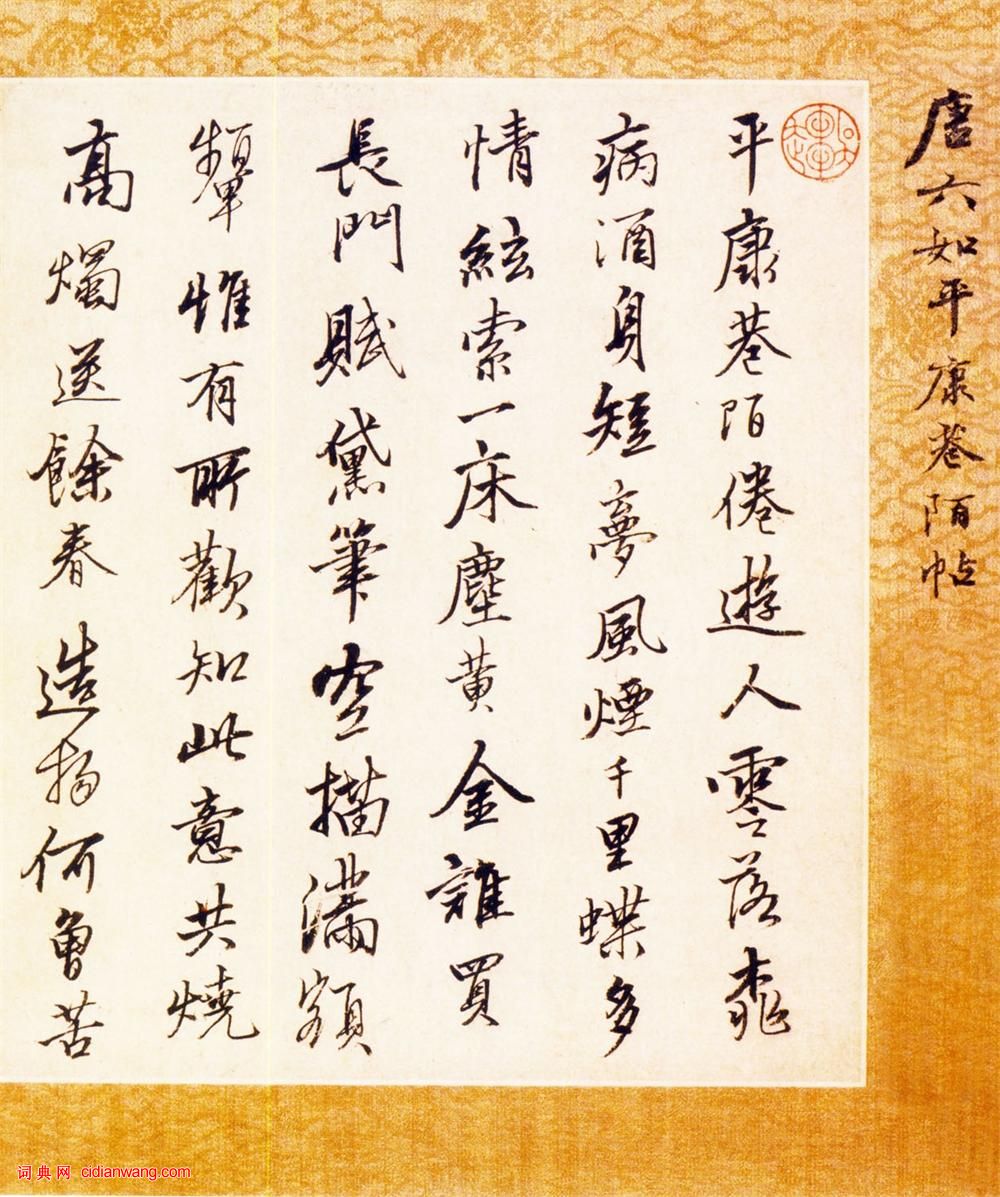 書法欣賞魏晉書法唐朝書法宋朝書法元朝書法明朝書法清朝書法近現代書法字典網>> 歷代書法>> 明朝>> 唐寅行書《平康巷陌帖橫幅》(2)正文 唐寅行書《平康巷陌帖橫幅》(2)作者:唐寅 書體:行書 首 頁 上一頁 1 2 唐寅的相關書法作品:唐寅·自書詞卷 唐寅行書《跋宋王詵江山疊翠圖》 唐寅行書《七言絕句四條屏》 唐寅行書 《秋風紈扇圖題詩》 唐寅《行書絕句四條屏》 唐寅行書《落花詩冊》蘇州市博物館藏本 唐寅《行書題松崖圖五言詩扇面》 唐寅行書《臨韓熙載夜宴圖題詩》 唐寅《行書自書詩》 相關文章:胡助·跋范仲淹《道服贊》 (楷書)胡助跋范仲淹《道服贊》,楷書,縱34.8cm,北京故宮博物院藏。張弼草書《王維詩》 (草書)張弼《草書王維詩》(傳) 紙本 卷 縱155.4公分 橫61.5公分。米芾·提刑殿院帖 (行書)【釋文】芾頓首啟。衰老人所棄,蒙□節,翌日欲拜謝,慮大君子訝其情文,欽向欽向!晴...康有為《行書樹立忠義五言聯》 (行書)康有為《行書“樹立忠義”五言聯》 紙本行書 130cm×31.5cm×2 ...梁巘《行草論書軸》 (行草)梁巘《行草論書軸》紙本行草書 104×51cm 安徽省博物館藏。 《行草論書軸...趙構·徽宗文集序 (楷書)趙構楷書《徽宗文集序》(局部),紙本,縱27.4厘米,橫(全長)137.0厘米。...西漢隸書《馬王堆帛書》 (隸書)湖南省博物館藏 1973年在湖南長沙馬王堆三號漢墓出土。包括《戰國策縱橫家書》、...顏真卿楷書《朱巨川告身》 (楷書)顏真卿楷書《朱巨川告身》(三希堂本)在書法史上,他是繼二王之後成就最高,影響最大...曹寶麟《臨王羲之蘭亭序》 (行書)曹寶麟《臨王羲之蘭亭序》 2009年中秋。釋文:略 款署:右王右軍《蘭亭敘》,號...王鐸《米芾行書天馬賦跋》 (小楷)王鐸《米芾行書天馬賦跋》,小楷。王鐸小楷自家模樣,《米芾行書天馬賦跋》似以更自由...