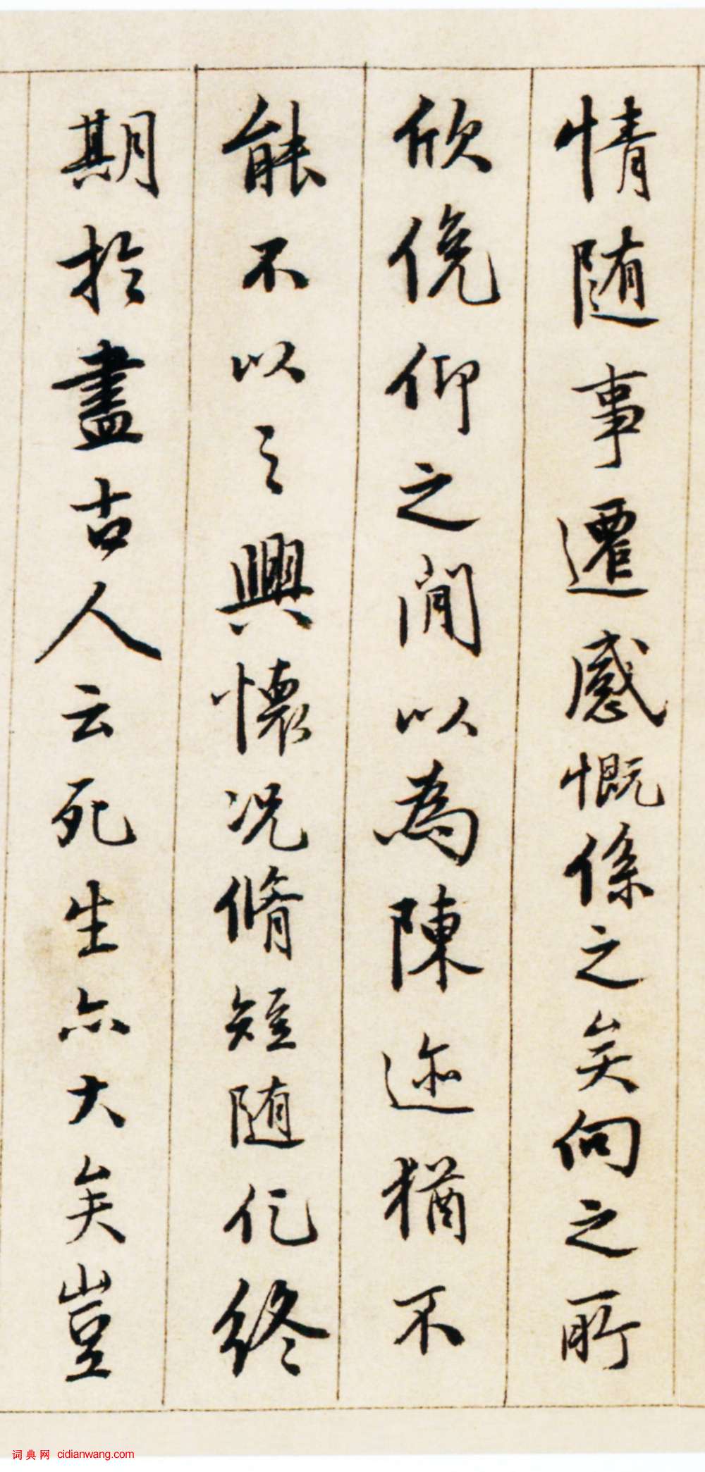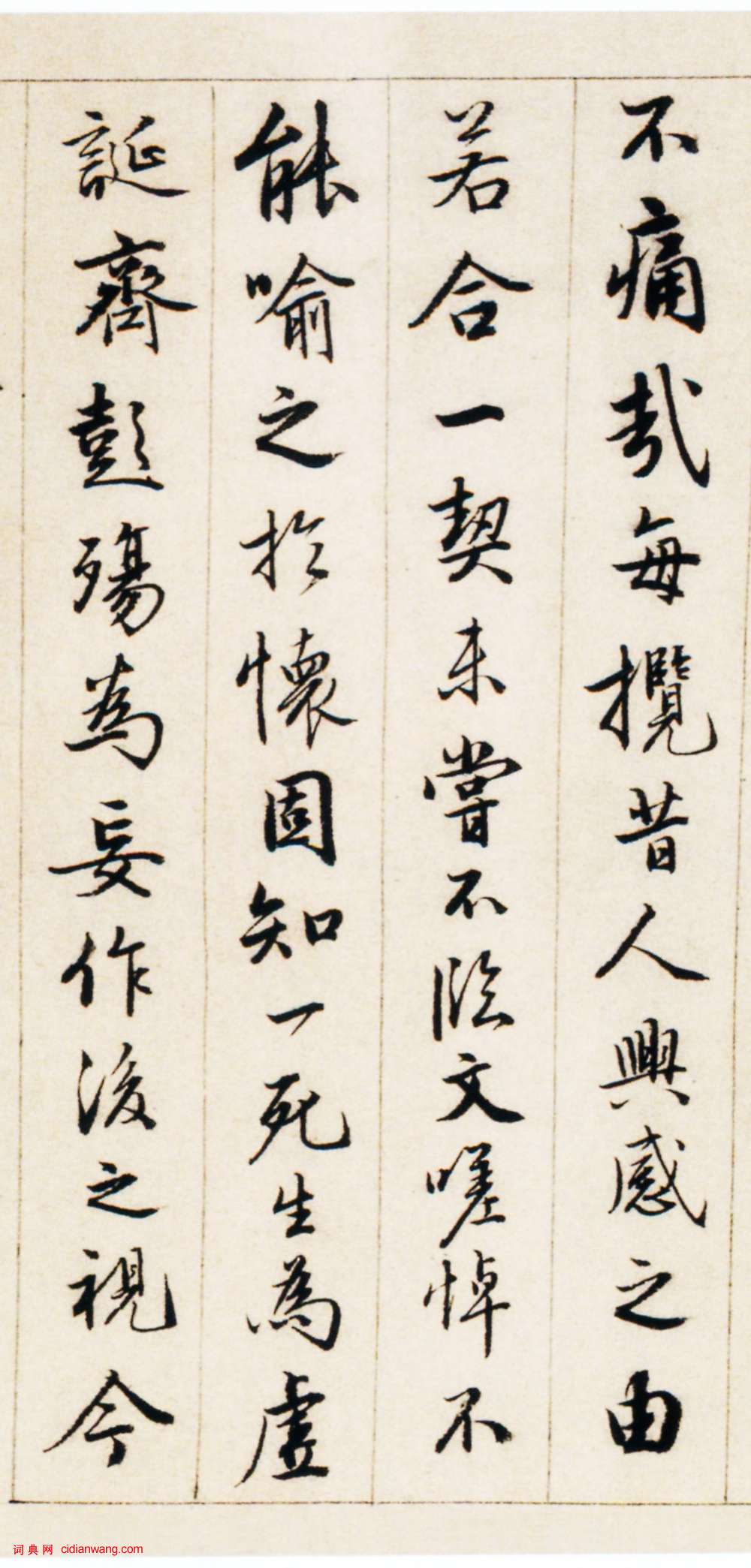 書法欣賞魏晉書法唐朝書法宋朝書法元朝書法明朝書法清朝書法近現代書法字典網>> 歷代書法>> 明朝>> 唐寅行書《臨蘭亭序卷》(4)正文 唐寅行書《臨蘭亭序卷》(4)作者:唐寅 書體:行書 首 頁 上一頁 1 2 3 4 唐寅的相關書法作品:唐寅行書《千金良夜七言律詩軸》 唐寅 漫興墨跡 唐寅行書《尺牘之二》 唐寅行書自題《王蜀宮妓圖》 唐寅行書《尺牘之一》 唐寅行書《花下酌酒歌扇面》 唐寅《行書題松崖圖五言詩扇面》 唐寅行書《七言絕句四條屏》 唐寅行書題《立石叢卉圖》 相關文章:王鐸論書法 王鐸的書法筆記 (行書)▶ 書法貴得古人結構。近觀學書者,動效時流。古難今易,古深奧奇變,今嫩弱俗雅,易...周慧珺《古詩楷書學生字帖》 (行楷)周慧珺老師自幼愛好書法,臨池不倦,終成大家,她的字被譽為“當代米芾”,以行書、楷...狄平子《楷書十言聯》 (楷書)狄平子《楷書十言聯》,紙本,縱139厘米,橫23厘米,浙江省圖書館藏。孫星衍·跋《唐摹蘭亭序》 (行書)【釋文】嘉慶戊辰,在歷下見錢學史樾所藏唐撫蘭亭墨跡,因刊於石。今見此本亦是褚臨,...文徵明行書《苦瘍帖》 (行書)文徵明行書《苦瘍帖》釋文:瘍勢比日稍損,然未能解脫,夜臥不安,兼苦舊逋迫促,情況...危素跋《任仁發張果老見明皇圖卷》 (小楷)任仁發《張果老見明皇圖卷》 絹本 縱41.5cm,橫107.3cm。 北京故宮博...田蘊章楷書《千字文》 (楷書)千字文,由南北朝時期梁朝散騎侍郎、給事中周興嗣編纂、一千個漢字組成的韻文(在隋唐...蘇軾行書《職事帖》 (行書)蘇軾《職事帖》是一則信禮,亦稱《致主簿曹君尺牘》。 行書;紙本;縱27.8厘米,...劉重慶·跋趙孟頫《吳興賦》 (行書)劉重慶跋趙孟頫《吳興賦》,縱25.2厘米。現藏浙江省博物館。倪元璐行草《自作有感五言詩軸》 (行草)倪元璐《自作有感五言詩軸》綾本行草書 150.5×49.1cm 浙江省博物館藏...