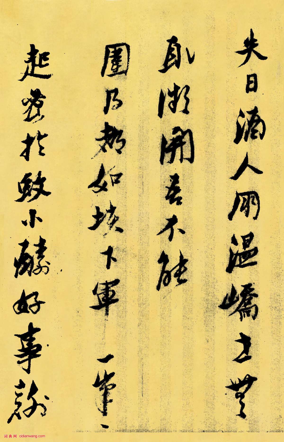 資源下載魏晉書法唐朝書法宋朝書法元朝書法明朝書法清朝書法近現代書法字典網>> 歷代書法>> 明朝>> 倪元璐行書《戊辰春十篇等詩冊》(6)正文 倪元璐行書《戊辰春十篇等詩冊》(6)作者:倪元璐 書體:行書 首 頁 上一頁 1 2 3 4 5 6 7 下一頁 尾 頁倪元璐的相關書法作品:倪元璐《題畫行草詩軸》 倪元璐楷書《贈行之杜甫詩句立軸》 倪元璐行書《杜牧贈李秀才是上公孫子詩軸》 倪元璐草書《贈樂山五言律詩軸》 倪元璐《書趙嘏“野僧壁”七絕詩軸》 倪元璐行草《自作有感五言詩軸》 倪元璐《舞鶴賦卷》 倪元璐《行書“槖駝亦易識”五律詩軸》 倪元璐《行草書體秋之一五言詩軸》 相關文章:鄧石如行草《海龍天鶴五言聯》 (行草)鄧石如《海為龍世界 天是鶴家鄉行草五言聯》 中國國家博物館藏【釋文】海為龍世界,...孫過庭草書《書譜》 (草書)孫過庭草書真跡書法長卷《書譜卷》墨跡本,縱26.5厘米,橫900.8厘米,台北故...沈遼《行書動止帖》 (行書)沈遼《行書動止帖》,藏上海博物館。 沈遼,著名學者沈括從弟。其書法五體皆能,尤以...李文田《致雨生書札》 (行書)李文田《致雨生書札》。釋文:雨生尊兄大人執事:八月二日接奉手誨,敬悉諸凡,遙瞻矞...張大千:書畫是最好的養生張大千▶張大千不僅在繪畫方面的造詣爐火純青,在養生方面也是很有研究的。張大千的健...傅山《草書祝錫予六十壽十二條屏》軸 (草書)傅山《草書祝錫予六十壽十二條屏》軸 綾本 200×51.5cm×12 山西省...王時敏隸書《陶淵明詩軸》 (隸書)王時敏《隸書陶淵明詩軸》紙本隸書 111.2×59.5cm 北京故宮博物院藏 ...蔡襄《腳氣帖》 (行草)【釋文】仆自四月以來,輒得腳氣發腫,入秋乃減,所以不辭北行,然於湖山佳致未忘耳。...常用漢字《篆隸對照字帖》常用漢字《篆隸對照字帖》,喜歡篆書、隸書的朋友可以收藏起來以供參考!蘇軾行書《屏事帖》 (行書)蘇軾《屏事帖》 書於1085年(元豐八年) 釋文:宣猷丈丈計已屏事齋居 未敢上狀...