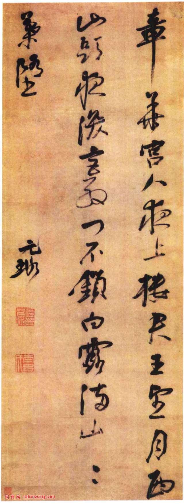 倪元璐草書《“章華宮人夜上樓”七言詩軸》