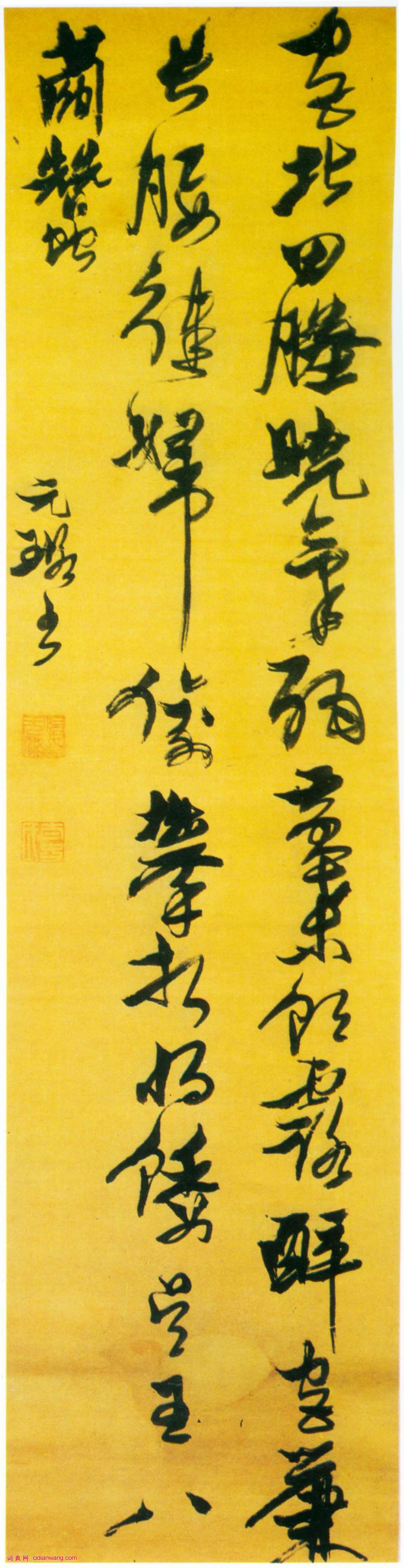 書法欣賞魏晉書法唐朝書法宋朝書法元朝書法明朝書法清朝書法近現代書法字典網>> 歷代書法>> 明朝>> 倪元璐《行書李賀南園一首詩軸》正文 倪元璐《行書李賀南園一首詩軸》作者:倪元璐 書體:行書 倪元璐《行書李賀南園一首詩軸》絹本行書 194×49cm 廣東省博物館藏釋文:宮北田塍曉氣酣,黃桑飲露醉宮簾。長腰健婦偷攀折,將餧吳王八繭蠶。元璐書。 【資料來源】《廣東省博物館藏法書選集》(文物出版社)倪元璐的相關書法作品:倪元璐《書趙嘏“野僧壁”七絕詩軸》 倪元璐草書《書林逋即席送江夏茂才七絕詩軸》 倪元璐楷書《贈行之杜甫詩句立軸》 倪元璐《行草書體秋之一五言詩軸》 倪元璐行草《致崑生札》 倪元璐《行草書體秋之一五言詩軸》 倪元璐行書《杜牧贈李秀才是上公孫子詩軸》 倪元璐草書《贈樂山五言律詩軸》 倪元璐《草書節錄吳都賦詩軸》 相關文章:漢碑隸書之精品《肥致碑》 (隸書)《肥致碑》全稱《河南梁東安樂肥君之碑》建於東漢建寧二年(一六九)五月,碑高九十七...狂草大家陳淳書法小品欣賞 (草書)陳淳,名淳,字道復,後以字行,別字復甫,自號白陽山人。長洲人。陳淳自幼飽學,對於...今釋行書《再承朽翁言笑詩扇》 (行書)今釋《行書再承朽翁言笑詩扇》金箋行書 16.1×50.7cm 1679年 上海...釋擔當·竹詩草書軸 (草書)【釋文】詩翁種植不近城,一枝雖瘦骨猶清。為是無色人不忌,騰騰千丈插天生。竹。擔當...蘇軾楷書《醉翁亭記》 (楷書)《醉翁亭記》,歐陽修撰,蘇軾書。此碑刻,現存於安徽滁州醉翁亭景區寶宋齋內,兩塊四...趙之謙《楷書風流辨雕八言聯》 (楷書)趙之謙《楷書風流辨雕八言聯》紙本楷書 168.5×36.5cm×2 浙江省博...李陽冰篆書《千字文》 (篆書)李陽冰,字少溫,趙郡(今河北省趙縣)人,生卒年不詳。好古,善屬文,他曾為縉雲令、...朱耷《行書題畫詩軸》 (行書)朱耷《行書題畫詩軸》紙本行書 123.7×49.8cm 上海博物館藏釋文:漢去...陳繼儒·跋《宋拓黃庭經》 (行書)陳繼儒跋《宋拓黃庭經》,行書。林散之《自作詩附寄楊嘯翁二律並書》 (行書)林散之《自作詩附寄楊嘯翁二律並書》 1914年 釋文: 款署:甲寅九月十三午時,...