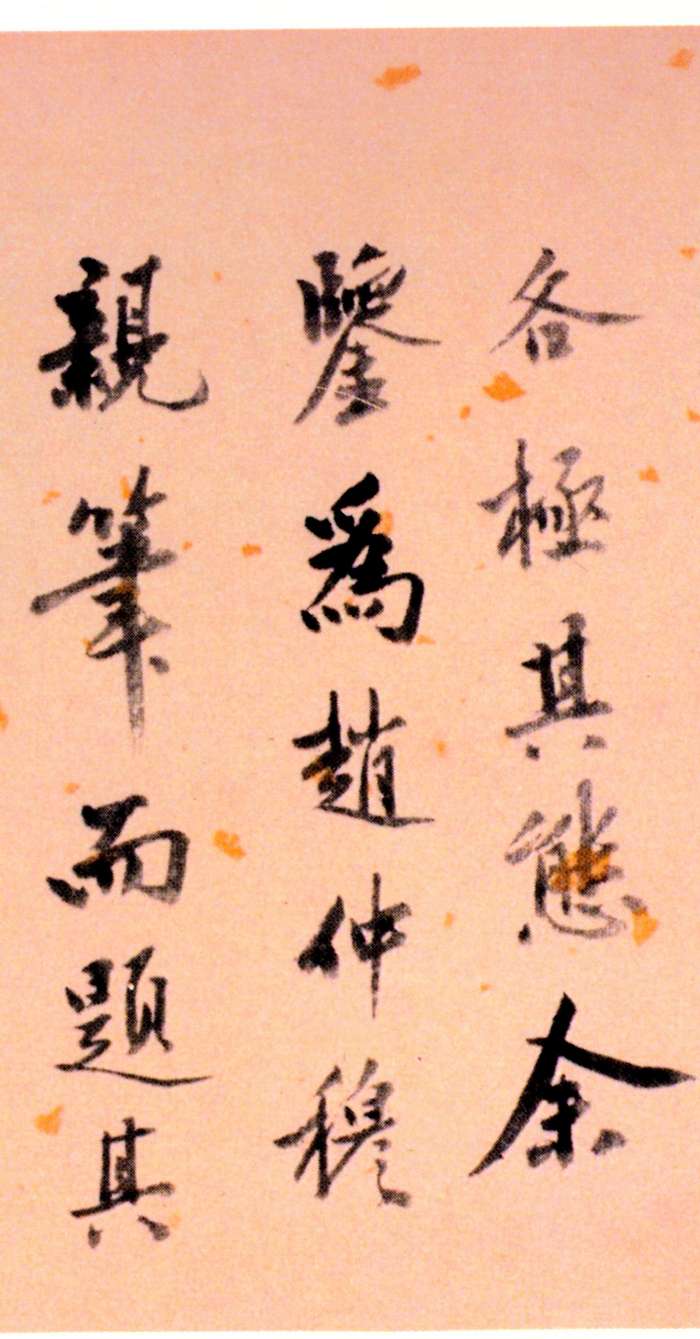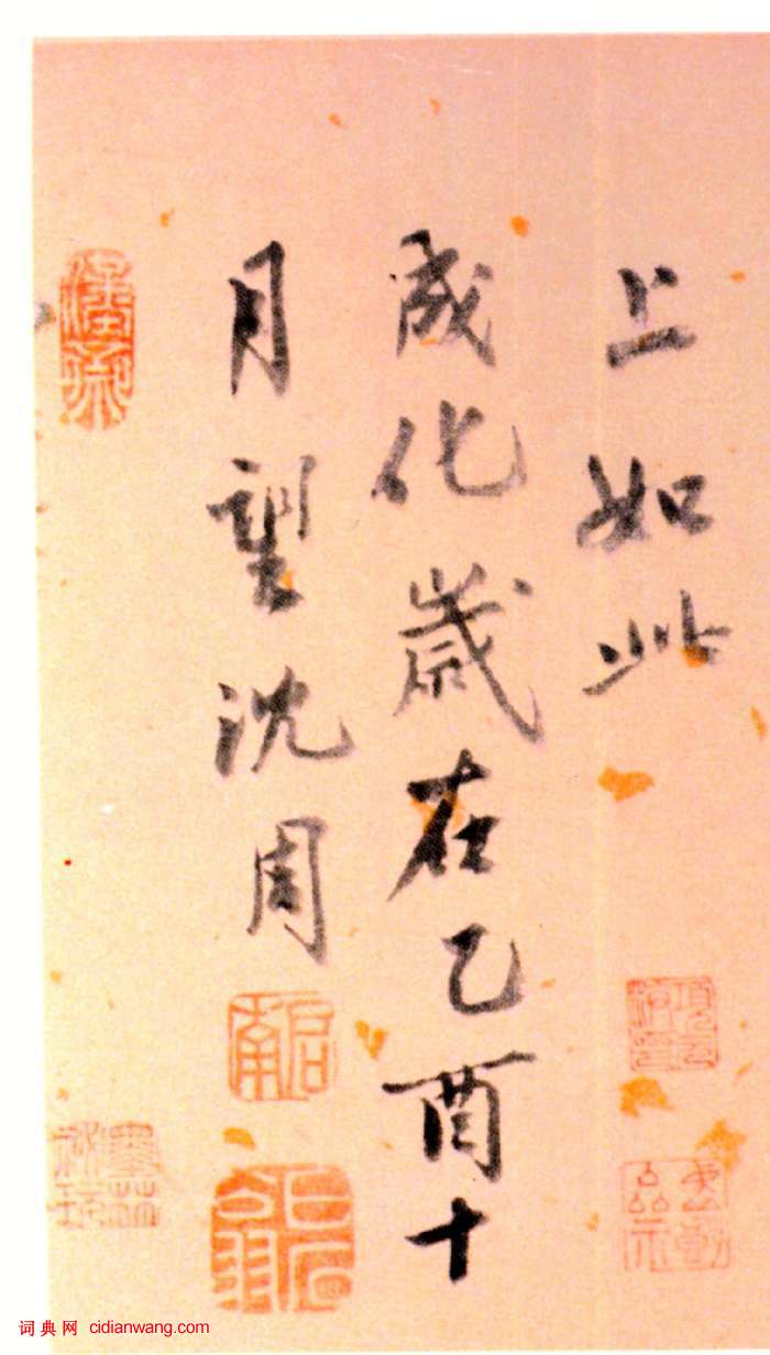 資源下載魏晉書法唐朝書法宋朝書法元朝書法明朝書法清朝書法近現代書法字典網>> 歷代書法>> 明朝>> 沈周行書《題趙雍沙苑牧馬圖跋》(6)正文 沈周行書《題趙雍沙苑牧馬圖跋》(6)作者:沈周 書體:行書 首 頁 上一頁 1 2 3 4 5 6沈周的相關書法作品:沈周行書《題趙雍沙苑牧馬圖跋》 沈周·行書詩卷 沈周·跋陸游《懷成都十韻詩卷》 沈周·自題《為祝淇作山水軸》 沈周《為漢文書扇》 沈周《行書自作詩卷》 沈周《行書落花詩扇》 沈周《聲光帖》 沈周《行書落花詩扇葉》 相關文章:董其昌行書《東方朔答客難並自書詩卷》 (行書)董其昌《書東方朔答客難並自書詩卷》紙本行書 26×334cm 崇禎元年(162...沈周·跋陸游《懷成都十韻詩卷》 (行書)沈周跋陸游《懷成都十韻詩卷》,行草書,縱34.6cm。故宮博物院藏。蕭嫻行書《道登天門橫披》 (行書)蕭嫻《道登天門橫披》 159×372cm 1992年 江蘇省美術館藏 釋文: ...王羲之草書《瞻近龍保帖》 (草書)王羲之《瞻近龍保帖》(唐人臨本)。紙本,縱二五厘米 橫三七·五厘米。草書。英國...北齊《泰山佛說金剛經》 (隸書)《泰山經石峪》,又名《泰山佛說金剛經》,摩崖石刻,北齊天保間刻,刻于山東泰山斗母...奚岡《隸書傅玄席銘橫幅》 (隸書)奚岡《隸書傅玄席銘橫幅》紙本隸書 114×150cm 安徽省博物館藏款署:鶴渚...趙孟頫行書《題陸柬之文賦卷》 (行書)趙孟頫 《題陸柬之文賦卷》台北故宮博物院藏 釋文:右唐陸柬之行書文賦真跡,唐初善...王寵小楷《為海濱先生書五言詩扇》 (小楷)王寵《為海濱先生書五言詩扇》 扇面 箋本 19×54cm 匡時2007春季藝術...伊秉綬隸書《江山冰雪五言聯》 (隸書)伊秉綬《隸書聯》此作品見於 中國嘉德2007秋季拍賣會估價:RMB 8...左宗棠行書《少年虛己七言聯》 (行書)左宗棠《行書“少年虛己”七言聯》紙本行書 166.2×38.7cm×2 台北...