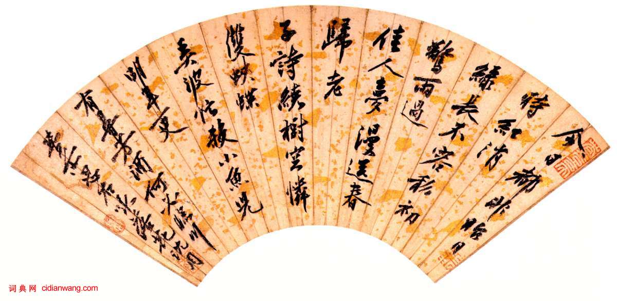 沈周《行書落花詩扇葉》灑金箋 18×48.3cm 浙江省博物館藏