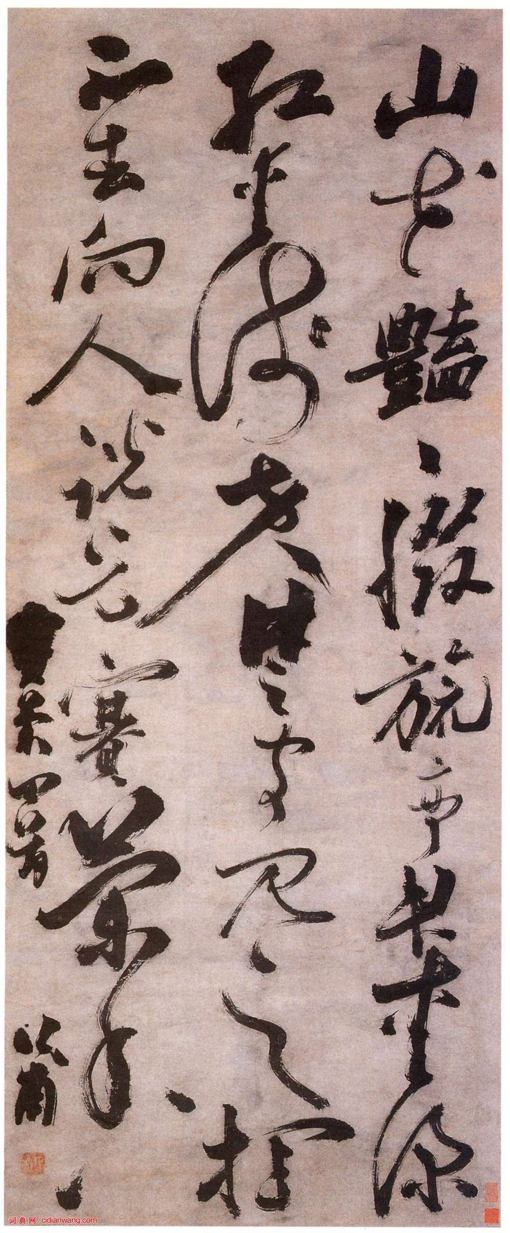 書法欣賞魏晉書法唐朝書法宋朝書法元朝書法明朝書法清朝書法近現代書法字典網>> 歷代書法>> 明朝>> 陳獻章行草《七絕賽蘭香詩軸》正文 陳獻章行草《七絕賽蘭香詩軸》作者:陳獻章 書體:行草 陳獻章《七絕賽蘭香詩軸》151.7×61.4cm 蘇州博物館藏 釋文:山花艷艷綴旒亭,君愛深紅愛淺黃。楚客見之揮不去,向人說是賽蘭香。賽蘭四首。公甫。【資料來源】《蘇州博物館藏明清書畫》(文物出版社) 相關文章:李陽冰篆書《三墳記》 (篆書)碑陽:碑陰:《三墳記》,唐李季卿撰文,李陽冰篆書。唐大曆二年(767年)立。碑文...彭睿壦行草《錄菜根譚句軸》 (行草)彭睿壦《行草錄菜根譚句軸》 廣州市美術館(現廣州藝術博物院)藏釋文:都來眼前事,...文徵明·跋張即之《汪氏報本庵記》 (楷書)文徵明跋張即之《汪氏報本庵記》,楷書。遼寧省博物館藏。張即之《汪氏報本庵記》,紙...戰國篆書《魚鼎匕》 (篆書)戰國早期《魚鼎匕》 殘長18.87厘米 遼寧省博物館藏 ...文徵明行草《城居煩暑詞翰冊》 (行草)明代,文徵明行草書法城居煩暑詞翰冊,六頁。釋文:城居煩暑避無方,野寺覓清涼。通湖...元拓《隋龍藏寺碑》 (楷書)《隋龍藏寺碑》講述了龍藏寺碑,隋開皇六年(公元五八六年)恆州刺史王孝零為勸造龍藏...敦煌寫經殘紙書法欣賞敦煌寫經是我國古文獻中的瑰寶,自1900年敦煌寫經卷在敦煌藏經洞被發現後,密藏多...董其昌行書 《蘇軾重九詩軸》 (行書)董其昌《蘇軾重九詩軸》紙本行書 214×53.3cm 上海博物館藏釋文:點點樓...陳奕禧行書《七絕立軸》 (行書)陳奕禧《行書七絕立軸》紙本行書 103×37cm 湖北省博物館藏釋文:我憶南湖...釋擔當·行草書四言詩軸 (行草)【釋文】即心是佛,砒霜狠毒。起死回生,不消一服。擔當。釋擔當《行草書四言詩軸》,...
