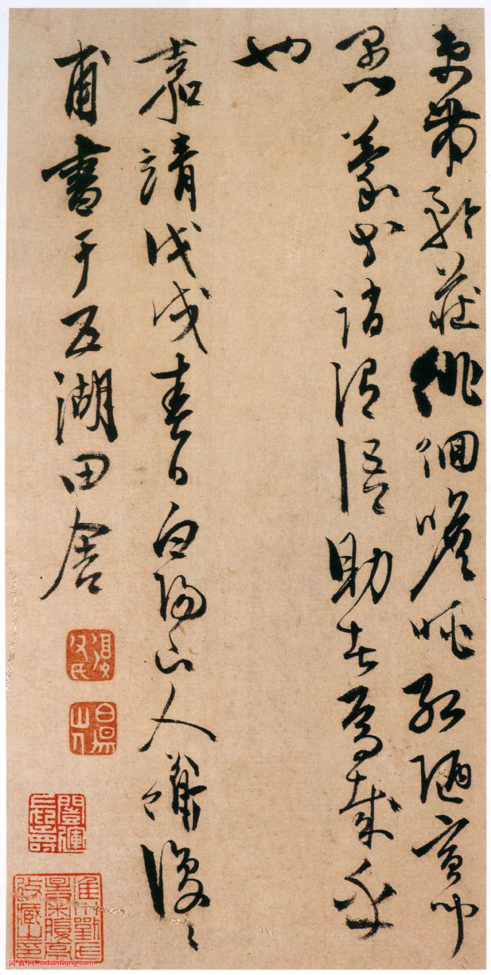資源下載魏晉書法唐朝書法宋朝書法元朝書法明朝書法清朝書法近現代書法字典網>> 歷代書法>> 明朝>> 陳淳《草書千字文》(9)正文 陳淳《草書千字文》(9)作者:陳淳 書體:草書 首 頁 上一頁 1 2 3 4 5 6 7 8 9陳淳的相關書法作品:陳淳·《荷花小鳥圖》題跋 陳淳《草書千字文》 陳淳·宋之問秋蓮賦 狂草大家陳淳書法小品欣賞 陳淳行書《杜甫秋興八首》 陳淳草書《游白蓮寺五言詩扇面》 陳淳草書《五言詩扇面》 相關文章:倪元璐草書《瀾園招飲詩扇面》 (草書)倪元璐《瀾園招飲詩扇面》 泥金紙本草書,17×52.5cm。北京故宮博物院藏釋...漢代篆書《張掖都尉啟信》 (篆書)“張掖都尉啟信”為一件21厘米×16厘米見方的紅色織物,上方正中綴系,正面墨筆...學書法如何正確臨帖?一、臨帖臨什麼臨帖是每一個學書法者不可缺的功課,如何臨帖是學書者都想急於解決的問...長沙窯詩文壺 《去歲無田種》 (隸書)隸書——青釉褐彩“去歲無田種”詩文壺 高17.9厘米 口徑9厘米 底徑10厘米 ...徐悲鴻給齊白石的拜節信 (行書)下面這封信,是上世紀50年代初端午節的前一天,徐悲鴻附帶著拜節的禮品差人送給齊白...吳榮光行書《錄李商隱漫成一首詩軸》 (行書)吳榮光《錄李商隱漫成一首詩軸》紙本行書 105.8×30.5cm 北京故宮博物...楊法《隸書四言聯軸》 (隸書)楊法《隸書四言聯軸》 來源不詳釋文:閉戶自精,開卷獨得王寵草書《水綠天微霽五言詩軸》 (草書)王寵《水綠天微霽五言詩軸》紙本草書 148×4.5cm 北京故宮博物院藏釋文:...倪元璐《行草書題小桃源圖詩軸》 (行草)倪元璐《行草書題小桃源圖詩軸》 絹本行草書,133.7×41.9cm。北京故宮...蘇軾行書《李太白仙詩卷》 (行書)蘇軾行書書法欣賞《李太白仙詩卷》,自署書於元祐8年(1093年)。紙本,李白詩二...