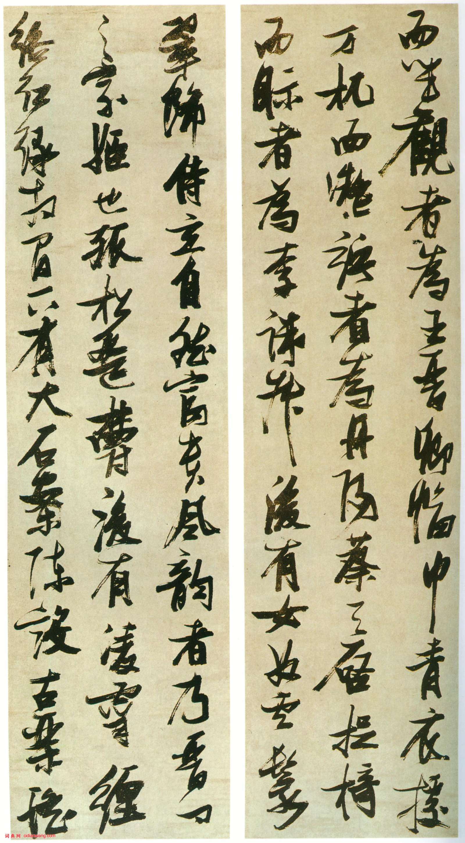 張瑞圖《書米芾西園雅集圖記十二條屏》 絹本行書 207×54.6cm×12條 年代不詳 日本東京國立博物館藏