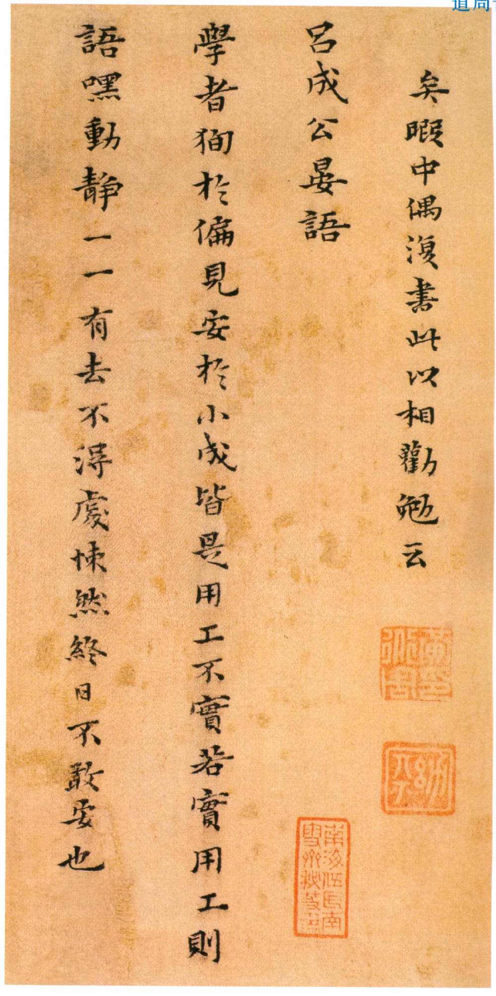 書法欣賞魏晉書法唐朝書法宋朝書法元朝書法明朝書法清朝書法近現代書法字典網>> 歷代書法>> 明朝>> 黃道周小楷 《雜書冊》(7)正文 黃道周小楷 《雜書冊》(7)作者:黃道周 書體:小楷 首 頁 上一頁 3 4 5 6 7 8 9 10 11 12 下一頁 尾 頁黃道周的相關書法作品:黃道周行草 《贈倪獻汝叔侄詩軸》 黃道周行草《倚鋤五言詩軸》 黃道周行書《臨王羲之誓墓文》 黃道周行草《大滌山中贈孟閬庵詩軸》 黃道周楷書《自作詩六首詩冊》 黃道周楷書《王忠文祠碑文》 黃道周行草《偶逢越鳥信五律詩軸》 黃道周草書《雨滯廟灣詩扇》 黃道周行書《洗心詩》 相關文章:王蒙《愛厚帖》 (行書)王蒙《愛厚帖》,紙本,行書,縱33.3厘米,橫58.7厘米。北京故宮博物院藏。王...郭天錫·跋《神龍蘭亭序》 (楷書)郭天錫跋《神龍蘭亭序》,楷書,縱24.5cm,北京故宮博物院藏。郭天錫(1227...張即之行書《致尊堂太安人尺牘》 (行書)張即之《致尊堂太安人尺牘》冊 紙本(牙色印花粉箋) 行書 29.5×47.2c...北魏隸書《常岳等百餘人造像記》 (隸書)現藏於朵雲軒的《常岳等百餘人造像記》拓片為北朝造像記書法,年月泐。《補訪碑錄》中...書法欣賞三步曲,怎么欣賞書法在很多人看來,書法高深莫測,覺得是內行人的事,其實,書法是全中國人的事,你可以不...蔡京行書《跋宋徽宗唐十八學士圖卷》 (行書)蔡京《跋宋徽宗唐十八學士圖卷》絹本 縱29.4cm 台北故宮博物院藏 釋文:唐太...褚遂良《雁塔聖教序》 (楷書)《雁塔聖教序》亦稱《慈恩寺聖教序》,唐代褚遂良書。楷書,共1463字。公元653...傅山行草《哭子詩》冊 (行草)傅山 《哭子詩》冊 紙本 27.5cm×24.3cm×21 山西省博物...倪元璐行草《劉鉅溟過訪行草書札》 (行草)倪元璐《劉鉅溟過訪行草書札》行草書 藏處不詳釋文:江右新解頭劉鉅溟弟,丁卯所拔,...劉慶來《集王羲之行草千字文》 (行草)劉慶來重塑經典《劉慶來集王羲之行草千字文》,旭宇題字並序,河北人民出版社。這本《...