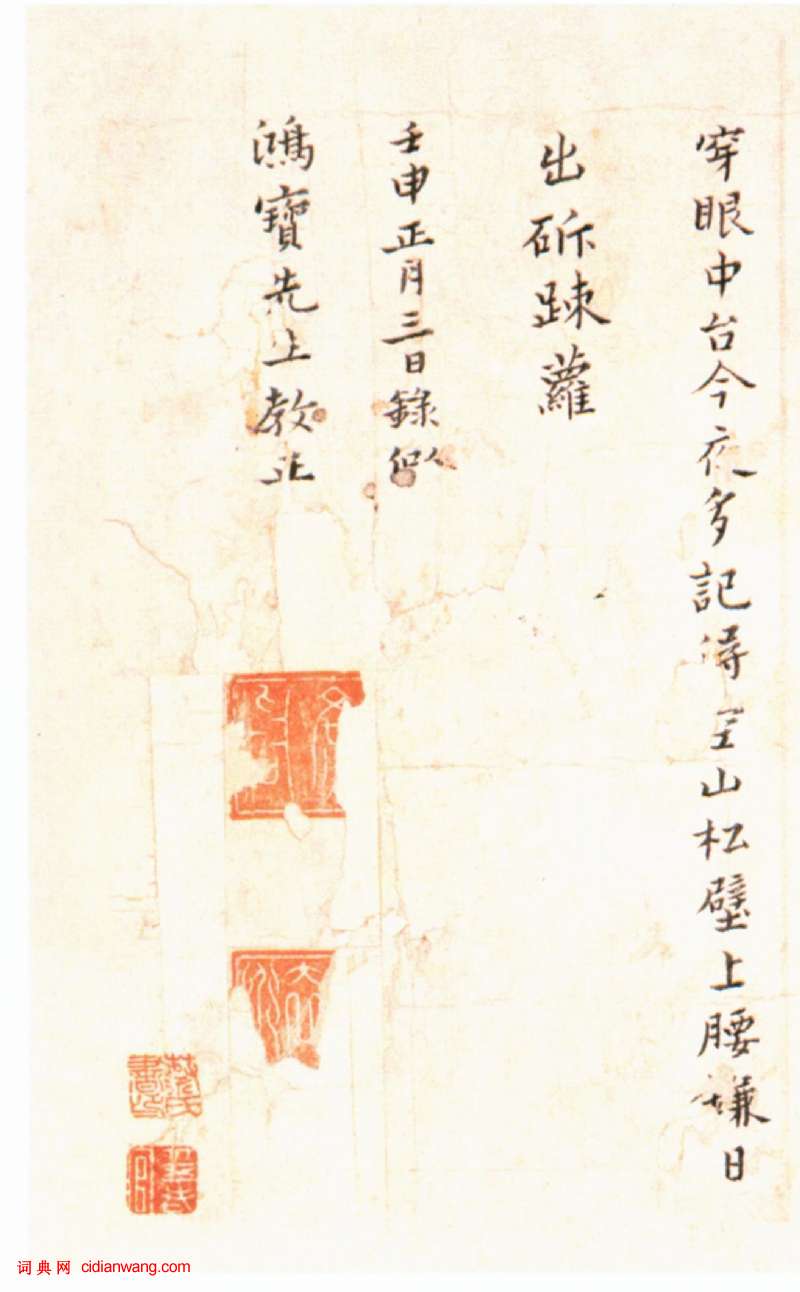 資源下載魏晉書法唐朝書法宋朝書法元朝書法明朝書法清朝書法近現代書法字典網>> 歷代書法>> 明朝>> 黃道周楷書《自作詩六首詩冊》(3)正文 黃道周楷書《自作詩六首詩冊》(3)作者:黃道周 書體:楷書 首 頁 上一頁 1 2 3黃道周的相關書法作品:黃道周草書《雨滯廟灣詩扇》 黃道周草書《答孫伯觀疏林摧倦翮詩軸》 黃道周行草 《贈倪獻汝叔侄詩軸》 黃道周楷書《丙子秋送省試諸友作詩扇》 黃道周行書《洗心詩》 黃道周小楷《孝經定本冊》之二 黃道周楷書《張溥墓志銘》 黃道周小楷 《雜書冊》 黃道周行書《請假得歸途次偶作詩軸》 相關文章:林則徐行書《上皇山採石》 (行書)林則徐《行書上皇山採石》軸 紙本 169X59.5cm 西泠印社藏 資料來...董其昌《樂毅論》 (楷書)《樂毅論》董其昌書。紙本。縱 26公分,橫224.5公分。廣東省博物館藏。樂毅論...倪元璐行書《致台翁手札》 (行書)倪元璐《致台翁手札》行書 此札內容為慰亡,寫得沉痛哀婉,但又以通脫之觀點為生者解...吳昌碩《隸書漢書秦雲四言聯》 (隸書)吳昌碩《隸書漢書秦雲四言聯》紙本隸書 144.5×40.4cm×2 1923...盧中南硬筆楷書《臨歐陽詢皇甫誕碑》 (楷書)皇甫誕碑全稱《 隋柱國左光祿大夫弘義明公皇甫府君之碑 》,亦稱《 皇甫君碑 》,...康有為《行書五言聯》 (行書)康有為《行書五言聯》 紙本 縱171厘米 橫45.1厘米 上海博物館藏資料來自上...范成大草書《春晚晴媚帖》 (草書)范成大《春晚晴媚帖》紙本 34.4×52.4cm 淳熙六年(1179)上海博物...蔣之奇《北客帖》 (行書)【釋文】之奇頓首啟:改朔,伏惟台候萬福。北客少留,方此甚熱,又房室隘窄,良不易處...東漢隸書《西嶽華山廟碑》 (隸書)《華山廟碑》(四明本)北京故宮博物院藏東漢隸書碑刻。篆額題《西嶽華山廟碑》。延熹...董其昌行草跋《張旭草書古詩四帖卷》 (行草)明代董其昌行書題跋《張旭草書古詩四帖卷》,遼寧省博物館藏。釋文:唐張長史書庾開府...