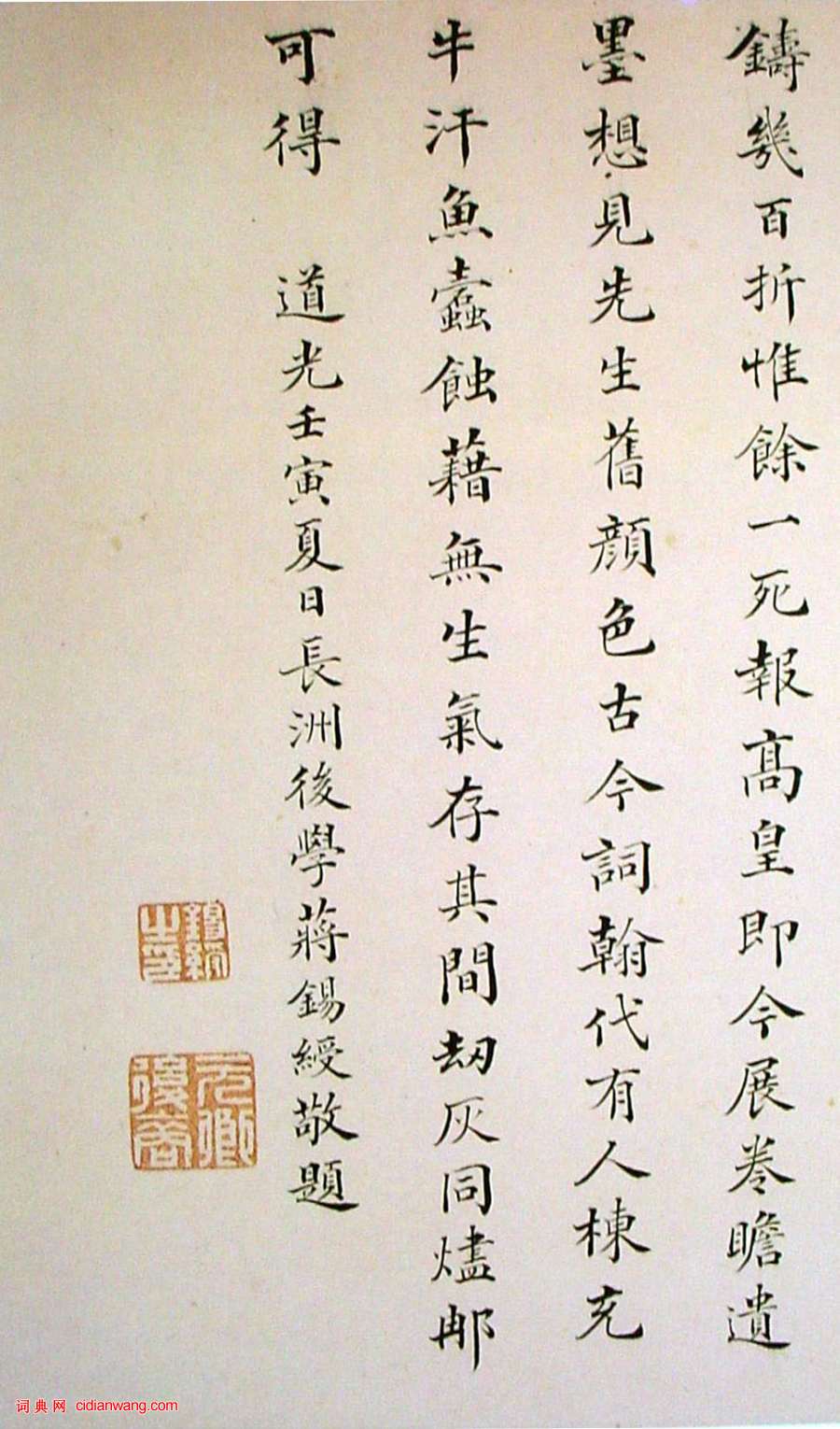 書法欣賞魏晉書法唐朝書法宋朝書法元朝書法明朝書法清朝書法近現代書法字典網>> 歷代書法>> 明朝>> 黃道周行草《答諸友詩卷》(9)正文 黃道周行草《答諸友詩卷》(9)作者:黃道周 書體:行草 首 頁 上一頁 1 2 3 4 5 6 7 8 9 10 下一頁 尾 頁黃道周的相關書法作品:黃道周行草 《贈倪獻汝叔侄詩軸》 黃道周行書《洗心詩》 黃道周行草《讀倪鴻寶疏五律詩軸》 黃道周行草《進神宗實錄有作詩軸》 黃道周草書《答孫伯觀疏林摧倦翮詩軸》 黃道周行書《偶答張湛虛大理詩軸》 黃道周草書《雨滯廟灣詩扇》 黃道周楷書《宓衍堂銘》 黃道周行書《鵬鳩豈有五言詩軸》 相關文章:斷臂人張文佑書法欣賞 (行書)張文佑,字德輔,號月台經生。1970年生,河南襄城人,中國書法家協會會員。張文佑...篆刻印章的習作與創作經過一定時間的臨摹後,對印章(尤指漢印)的基本特點和規律的認識有了初步掌握,就可...鄧散木《書法百問》鄧散木|(1898-1963),現代書法家、篆刻家。1898出生於上海,原名菊初...曾國藩行書《深院高台七言聯》 (行書)曾國藩《行書“深院高台”七言聯》 湖南省博物館藏釋文:深院小窗多明月,高台虛室生...智永《真草千字文》 (真草)《真草千字文》,真草二體,是智永傳世代表作,也是我國書法史上的留傳千古名跡。傳智...褚遂良小楷《文皇哀冊》 (小楷)褚遂良《文皇哀冊》,小楷,傳褚遂良貞觀二十三年(649)書。《文皇哀冊》帖,唐褚...歐陽詢楷書《蘭亭記》 (楷書)歐陽詢楷書字帖欣賞《蘭亭記》唐太宗貞觀二年(628)二月。歐陽詢楷書《蘭亭記》,...黃庭堅楷書《徐純中墓志銘》 (楷書)黃庭堅書法欣賞《徐純中墓志銘》,楷書,正方形,青石質。書於元祐二年(1087年)...孫過庭書譜集字古詩18首唐朝書法家、書論家孫過庭所書寫的《書譜》,是行草書中的經典作品。相信很多學習行草...王守仁《行書即事漫述四首之一詩軸》 (行書)王守仁《行書即事漫述四首之一詩軸》絹本行書 142×71cm 上海博物館藏釋文...