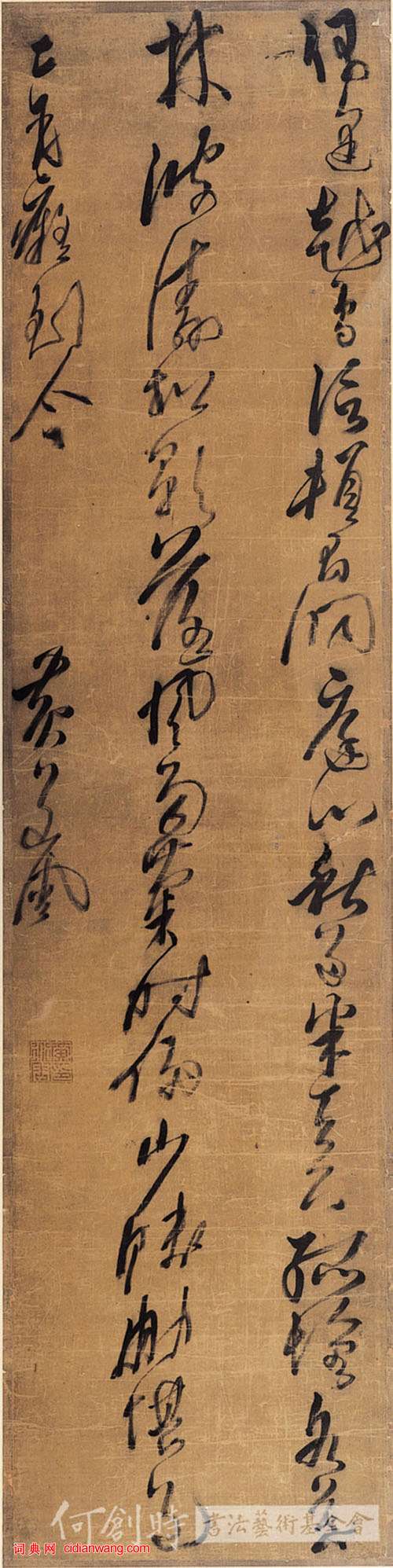 張瑞圖《行草蘇軾無言亭》詩軸 綾本 193.2×46.5厘米 年代不詳 南京博...