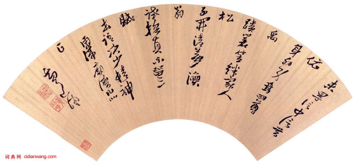 黃道周草書《雨滯廟灣詩扇》