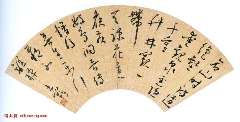 王寵《名山時訪道五言詩》扇面 紙本(金箋) 行草書 17.8 × 49.6 cm 浙江省博物館藏