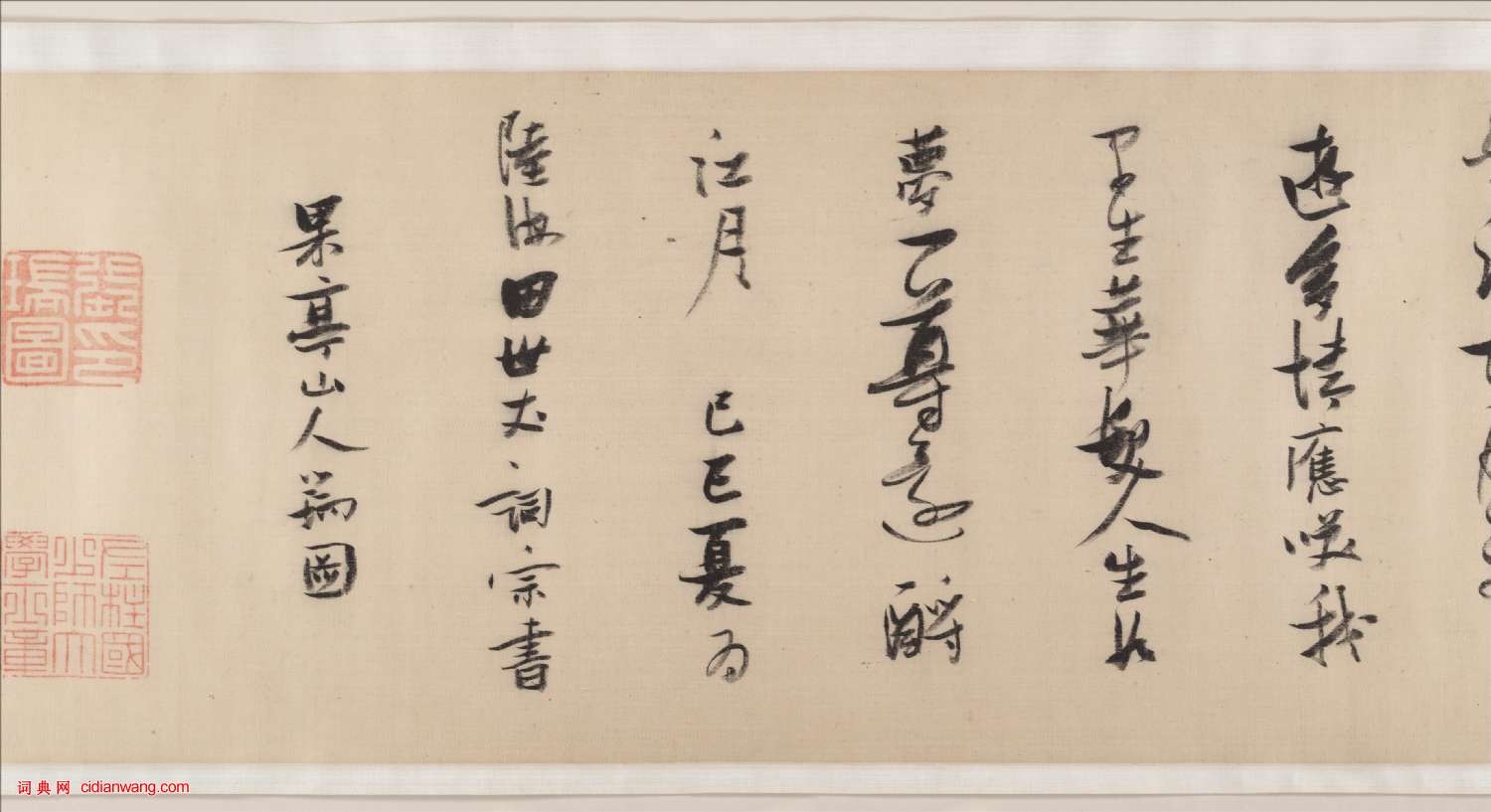 書法欣賞魏晉書法唐朝書法宋朝書法元朝書法明朝書法清朝書法近現代書法字典網>> 歷代書法>> 明朝>> 張瑞圖行書《赤壁懷古大江東去》(2)正文 張瑞圖行書《赤壁懷古大江東去》(2)作者:張瑞圖 書體:行書 首 頁 上一頁 1 2 張瑞圖的相關書法作品:張瑞圖《草書五律詩軸》 張瑞圖《草書千字文》 張瑞圖行草《詩評》卷 張瑞圖草書《李夢陽夏日過序公詩扇》 張瑞圖《行書鬱郁雙松老詩》 張瑞圖《行書除卻判無七言聯》 張瑞圖《行草書前赤壁賦》 張瑞圖草書《今春花開七言詩軸》 張瑞圖《行草書岳陽樓記並詩》冊 相關文章:田蘊章《每日一字》楷行草三體字帖 (行草)田蘊章,字存文,蟠逸齋主人。祖籍河北省河間縣臥佛堂鄉河西村。1945年生於天津。...唐寅行書《望湘人·春日花前詠懷詩扇面》 (行書)唐寅《望湘人·春日花前詠懷詩扇面》金箋行書 19.6×52.7cm 南京博物...祝允明·行書牡丹賦 (行書)此卷行書《牡丹賦》,有自題云:“甲申歲春三月望日,過湯氏西園觀牡丹盛開,廷用酒次...文徵明《行草口號十首卷》 (行草)明代文徵明書法作品欣賞《行草口號十首卷》紙本,高28.5厘米,縱310.6厘米,...吳榮光《行書四條屏》 (行書)吳榮光《行書四條屏》,廣東省立中山圖書館藏。刊於廣東省書法家協會《書藝》卷四(2...文徵明行書《詠花詩》卷 (行書)文徵明行書《詠花詩》卷。在這件縱39.3cm、橫546cm的鴻篇巨製中,文徵明以...王羲之《都下帖》 (草書)《都下帖》,傳王羲之書,麻紙摹本,縱27.7厘米。現藏台北故宮博物院。五行半,四...石韞玉·跋《唐摹蘭亭序》 (楷書)【釋文】蘭亭一帖,宋時人已聚訟。當唐文皇命御史蕭翼賺得蘭亭時,即命廷臣善書者各撫...顏真卿行草《劉中使帖》 (行草)顏真卿《劉中使帖》約書於大曆十年(775年)。墨跡。行書,信札。28.5×43...武威漢簡·儀禮簡 (隸書)中國甘肅省武威市漢墓中出土的簡牘。統稱武威漢簡。1959年,人們在武威磨嘴子墓群...