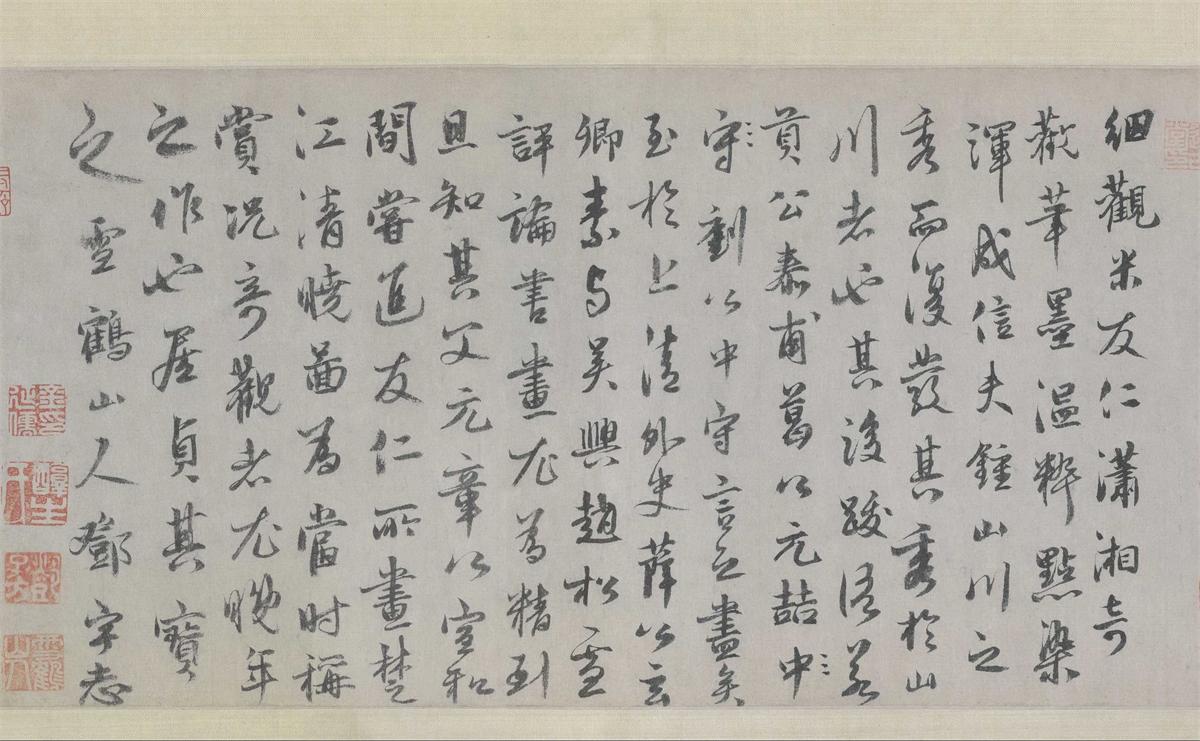 鄧宇行書《題米友仁瀟湘奇觀圖卷》