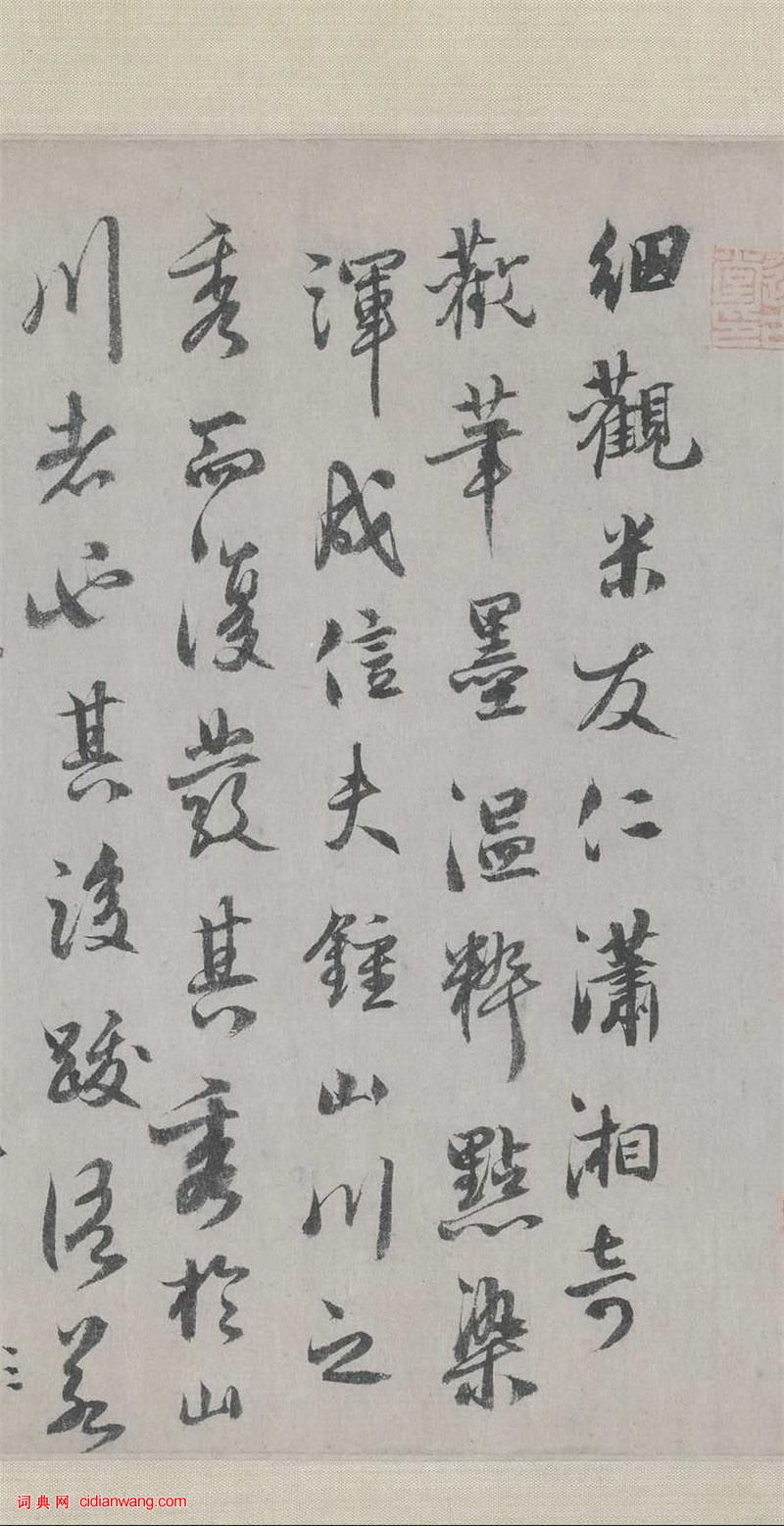 書法欣賞魏晉書法唐朝書法宋朝書法元朝書法明朝書法清朝書法近現代書法字典網>> 歷代書法>> 明朝>> 鄧宇行書《題米友仁瀟湘奇觀圖卷》(2)正文 鄧宇行書《題米友仁瀟湘奇觀圖卷》(2)作者:鄧宇 書體:行書 首 頁 上一頁 1 2 3 下一頁 尾 頁相關文章:經典小楷四十三行墨跡本《靈飛經》 (小楷)《靈飛經》又名《六甲靈飛經》,是靈道教的一部經。主要闡述存思之法。今道藏有《上清...文徵明行書滕王閣序 (行書)文徵明是明代著名的文學家、書畫家,在書法上有頗高的造詣,他的成就以小楷最為突出,...“當代草聖”林散之談楷書林散之林散之,名霖,又名以霖,字散之,號三痴、左耳、江上老人等。生於南京市江浦縣...歷代書法經典論著大觀兩漢▼許慎《說文解字序》崔瑗《草書勢》趙壹《非草書》蔡邕《筆論》《九勢》兩晉▼成...劉炳森隸書《千字文》 (隸書)劉炳森隸書《千字文》,書於京華瑞德堂,中國和平出版社出版,當代名家書千字文。蔡襄《腳氣帖》 (行草)【釋文】仆自四月以來,輒得腳氣發腫,入秋乃減,所以不辭北行,然於湖山佳致未忘耳。...中國最後一名狀元,劉春霖小楷欣賞 (小楷)“ 劉春霖是中國歷史上最後一名狀元,所謂“第一人中最後人”。劉春霖善書法,尤以小...王文治·跋褚遂良《孟法師碑》 (行書)王文治跋褚遂良《孟法師碑》,行書。趙秉文《趙霖昭陵六駿圖題跋》 (行書)【釋文】雒陽趙霖所畫天閑六馬圖觀其筆法圓熟清勁度越儔侶向時曾於梵林精舍覽一賣家寶...金農《隸書陳野水事軸》 (隸書)金農《隸書陳野水事軸》紙本隸書 124.1×42.9cm 上海博物館藏釋文:陳...