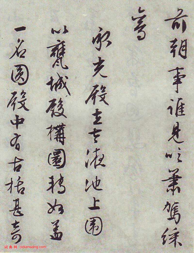 書法欣賞魏晉書法唐朝書法宋朝書法元朝書法明朝書法清朝書法近現代書法字典網>> 歷代書法>> 明朝>> 文徵明行草《西苑詩卷》(4)正文 文徵明行草《西苑詩卷》(4)作者:文徵明 書體:行草 首 頁 上一頁 1 2 3 4 5 6 7 8 9 10 下一頁 尾 頁 全文2016-8-27 8:42:24 文徵明的相關書法作品:文徵明行書《獨樂園記》及《獨樂園七詠》 文徵明小楷《太上老君說常清淨經》 文徵明行書《太液池詩》軸 文徵明草書《夏日睡起扇面》 文徵明行書《為沈天民作滸溪草堂圖》 文徵明行草《喜雨七言詩扇》 文徵明行書《致春潛函》 文徵明《行書致陸師道二札》之一 文徵明行書手卷 相關文章:今釋《行書畫耕七絕詩軸》 (行書)今釋《行書畫耕七絕詩軸》 190×40cm 廣州儀清室私人藏釋文:人皆耕地我耕...于右任行書《藏書紀事詩軸》 (行書)于右任《藏書紀事詩軸》 131.4×31.5cm 台北故宮博物院藏...羅洪先《行書夜坐詩十首詩卷》 (行書)羅洪先《行書夜坐詩十首詩卷》 紙本行書 27.6×625cm 北京故宮博物院...魯迅行書《贈熊君瑄無題詩頁》 (行書)魯迅 《贈熊君瑄無題詩頁》 20.5×14.9cm 1932年 北京魯迅紀念館...梅蘭芳書法作品欣賞 (行楷)梅蘭芳先生書法清靜雋秀,以行楷書 為主,小楷尤精。小楷風格來源於《樂毅論》、《黃...王穉登《行書軸》 (行書)王穉登《行書軸》,藏處不詳釋文:知希齋詩為王德探先生賦梁生既藏市,鄭子亦遜谷,齋...姚鼐《行草積雨晴時七言詩軸》 (行草)姚鼐《行草積雨晴時七言詩軸》紙本行草書 108.5×27.5cm 北京市文物商...祝允明草書《致文貴札》 (草書)祝允明《致文貴札》草書 23×43.5cm 上海博物館藏釋文:登高落帽,皆為風...王鐸《行書春江不可渡條幅》 (行書)王鐸《行書春江不可渡條幅》,立軸,書於明崇禎十二年(己卯1639年), 水墨綾本...申時行《行草七律詩扇》 (行草)申時行《行草七律詩扇》 19.4×55cm 蘇州博物館藏釋文:石磴縈紆翠壑重,...