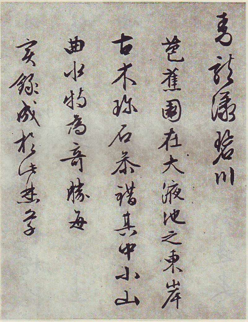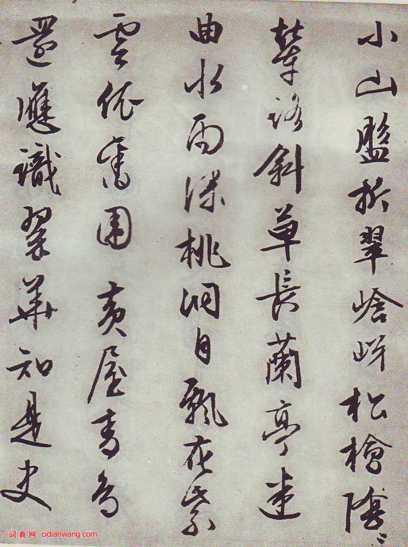 書法欣賞魏晉書法唐朝書法宋朝書法元朝書法明朝書法清朝書法近現代書法字典網>> 歷代書法>> 明朝>> 文徵明行草《西苑詩卷》(6)正文 文徵明行草《西苑詩卷》(6)作者:文徵明 書體:行草 首 頁 上一頁 2 3 4 5 6 7 8 9 10 11 下一頁 尾 頁 全文2016-8-27 8:42:24 文徵明的相關書法作品:文徵明《行書致琴山先生札》 文徵明行書《明妃曲》 文徵明行書《獨樂園記》及《獨樂園七詠》 文徵明行書自作詩卷 文徵明行書《樂志論》 文徵明《行書阿房宮賦》 冊頁 文徵明《行書七言詩立軸》 文徵明 《行書五言律詩》 文徵明行書《千字文》 相關文章:胡助·跋范仲淹《道服贊》 (楷書)胡助跋范仲淹《道服贊》,楷書,縱34.8cm,北京故宮博物院藏。沙孟海《楷書繡簾寒藻五言聯》 (楷書)沙孟海《楷書繡簾寒藻五言聯》 68×32cm 1983年釋文:繡簾垂籙簌,寒...洪亮吉《篆書家參詩在七言聯》 (篆書)洪亮吉《篆書家參詩在七言聯》紙本篆書 97.5×17cm×2 常州博物館藏 ...趙之琛《隸書七言聯》 (隸書)趙之琛《隸書七言聯》,西泠印社藏。來楚生行書《士玖嵌名五言聯》 (行書)來楚生《士玖嵌名五言聯》紙本(灑金蠟箋)行書 130×21cm×2 1943...吳熙載篆書《庾信詩》 (篆書)吳讓之篆書庾信詩。此卷高四十九厘米,橫三百二十七點五厘米,紙本。篆字二十七行,行...鄧石如篆書《四箴四條屏》 (篆書)《四箴四條屏》,篆書,紙本,縱206cm,橫31.3cm。北京故宮博物院藏。此屏...釋擔當·草書五絕詩軸 (草書)【釋文】土滿鋤難劃,牆低砍茨圍。我能存厚道,瓜菜自然肥。擔當。釋擔當《五絕詩軸》...傅山《行書七言絕句立軸》 (行書)傅山《行書七言絕句立軸》 絹本南京博物院藏釋文:常時隨雨復隨...曹操隸書《袞雪》 (隸書)曹操(傳) 《袞雪》 陝西漢中市博物館藏 “袞雪”——褒谷摩崖石刻十三品之第一品...